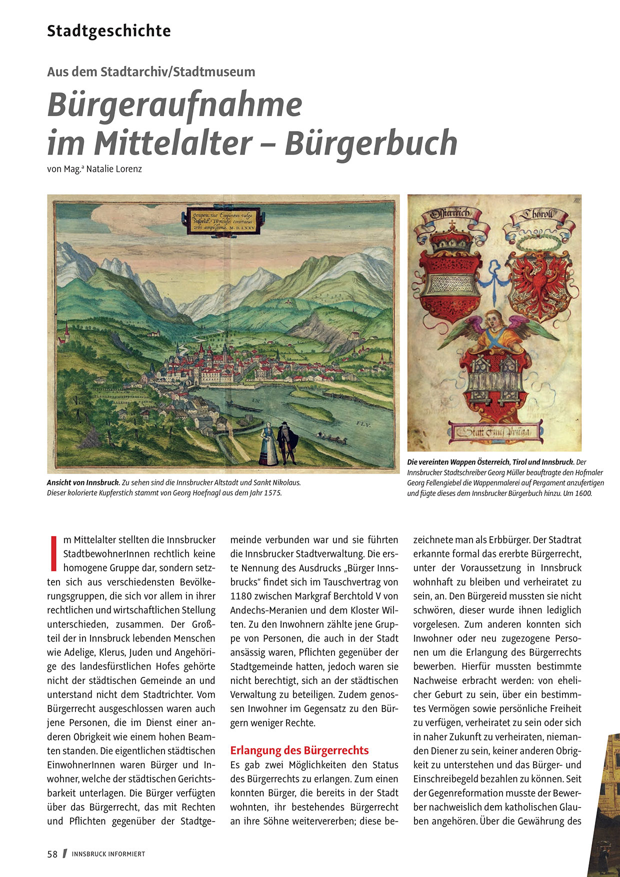 die Innsbrucker Stadtverwaltung. Die erste Nennung des Ausdrucks „Bürger Innsbrucks“ findet sich im Tauschvertrag von