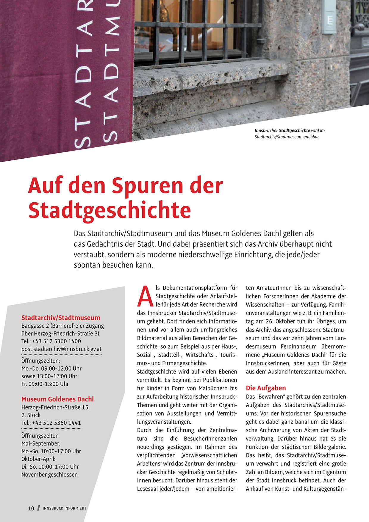 das Archiv, das angeschlossene Stadtmuseum und das vor zehn Jahren vom Landesmuseum Ferdinandeum übernommene „Museum Goldenes Dachl“ für die