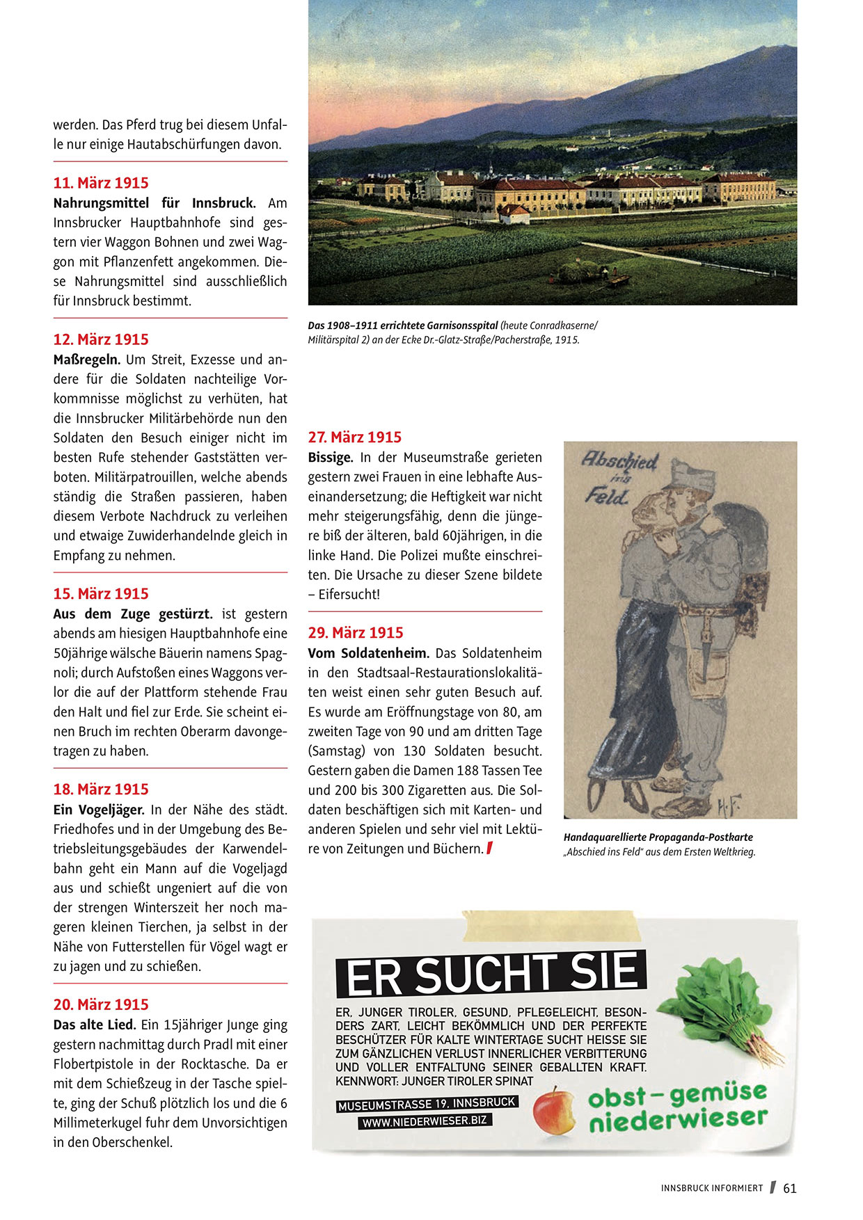 Maßregeln. Um Streit, Exzesse und andere für die Soldaten nachteilige Vorkommnisse möglichst zu verhüten, hat