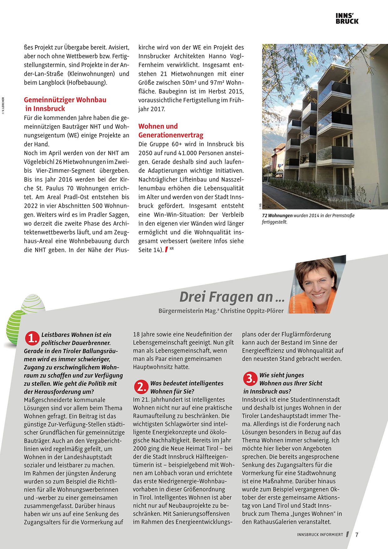 der die Stadt Innsbruck Hälfteeigentümerin ist – beispielgebend mit Wohnen am Lohbach voran und errichtete