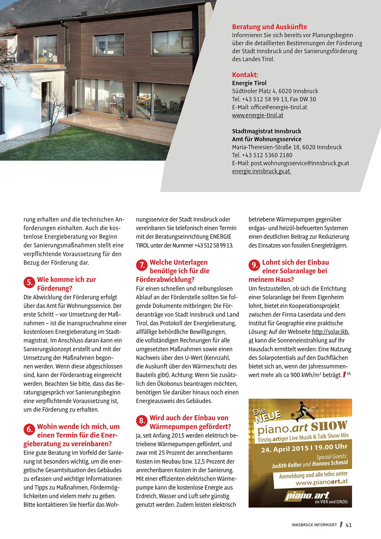 kostenlosen Energieberatung im Stadtmagistrat. Im Anschluss daran kann ein