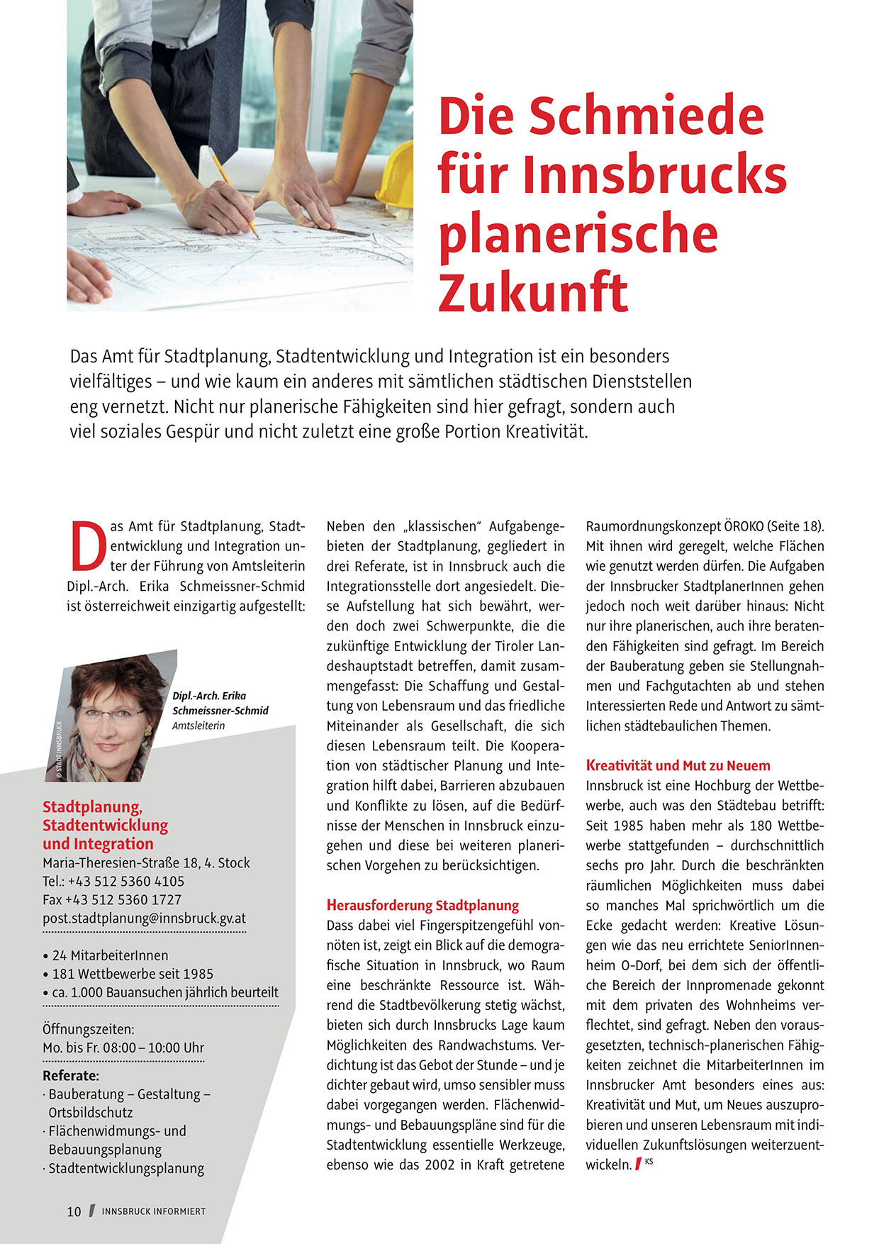 zukünftige Entwicklung der Tiroler Landeshauptstadt betreffen, damit zusammengefasst: Die Schaffung und Gestaltung von Lebensraum und das friedliche