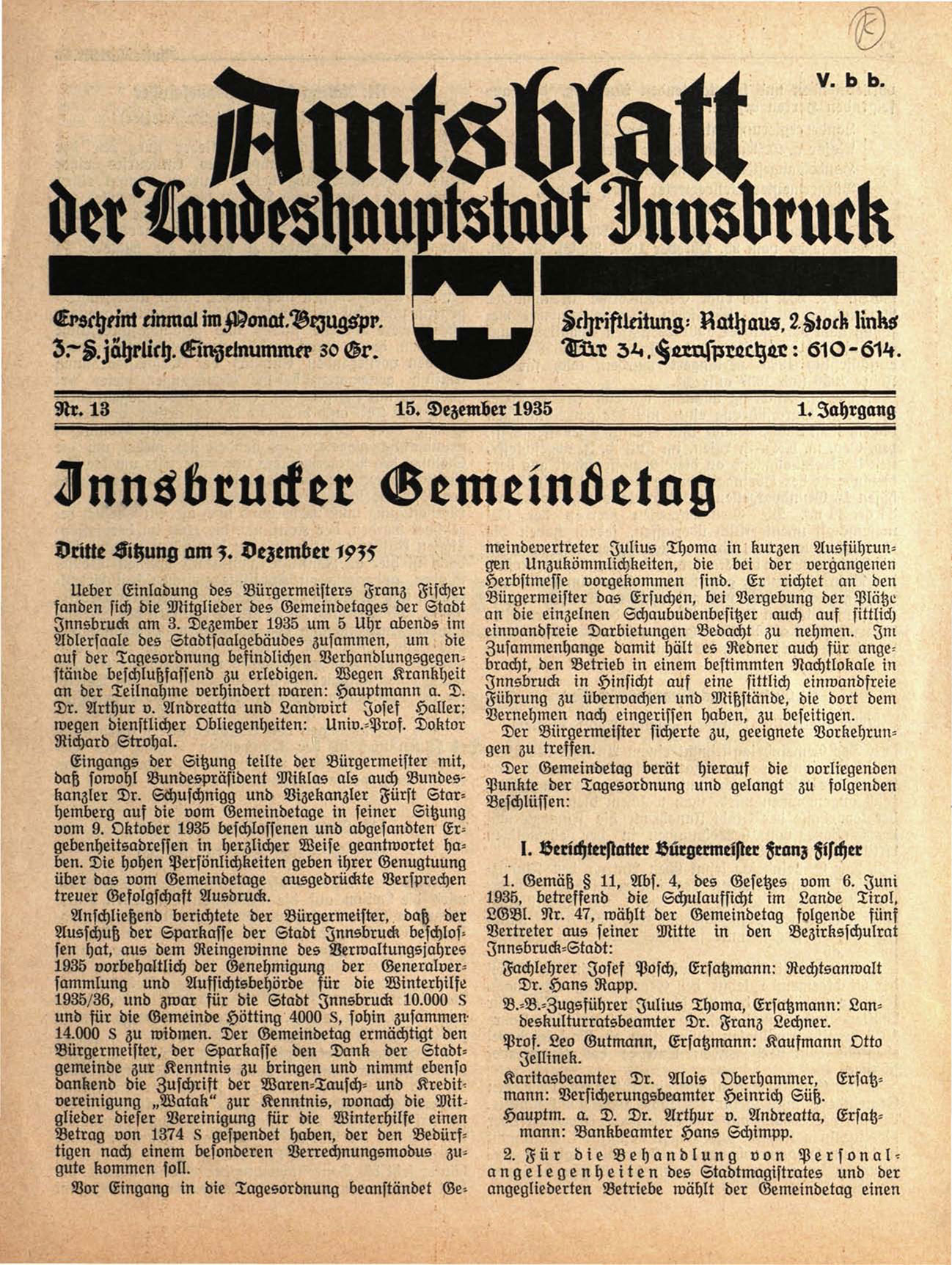 Innsbruck am 3. Dezember 1935 um 5 Uhr abends im