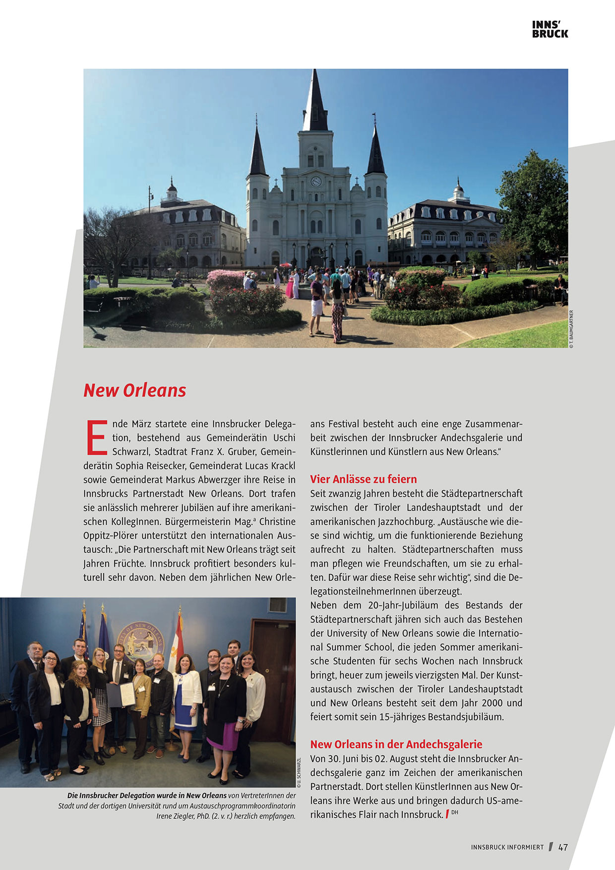Innsbrucks Partnerstadt New Orleans. Dort trafen