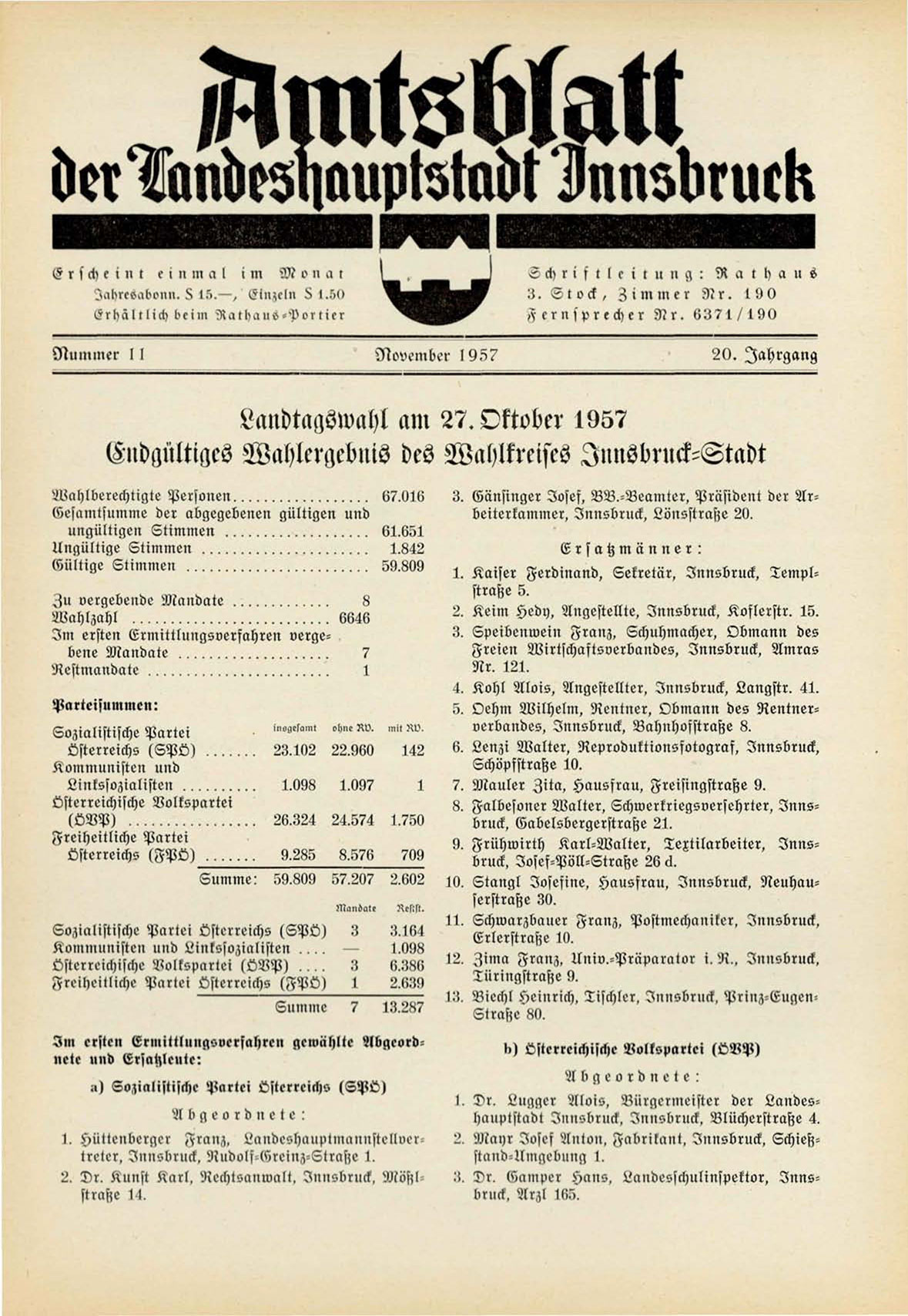 Endgültiges Wahlergebnis des Wahlkreises Innsbrnck-Stadt