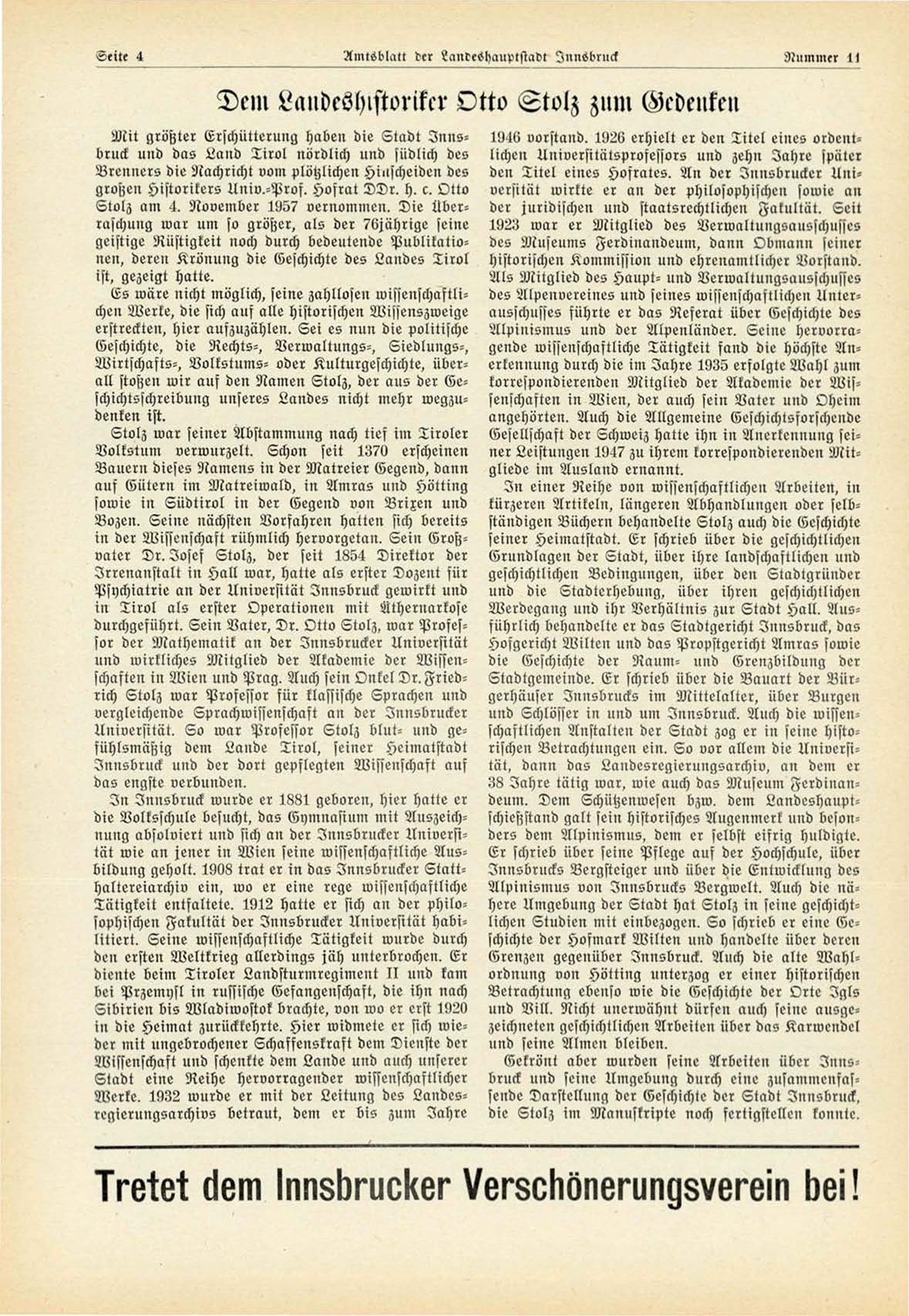 Stadtgemeinde. Er schrieb über die Bauart der Bürgerhäuser Innsbrucks im Mittelalter, über Burgen