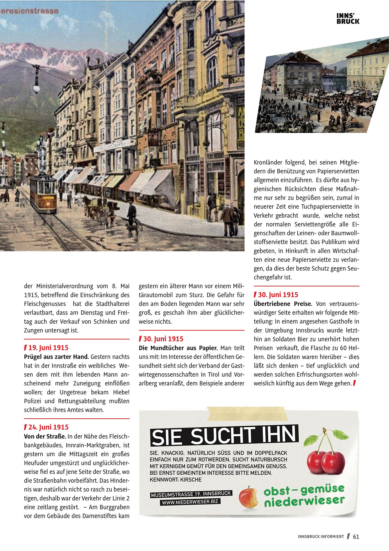 der Umgebung Innsbrucks wurde letzthin an Soldaten Bier zu unerhört hohen