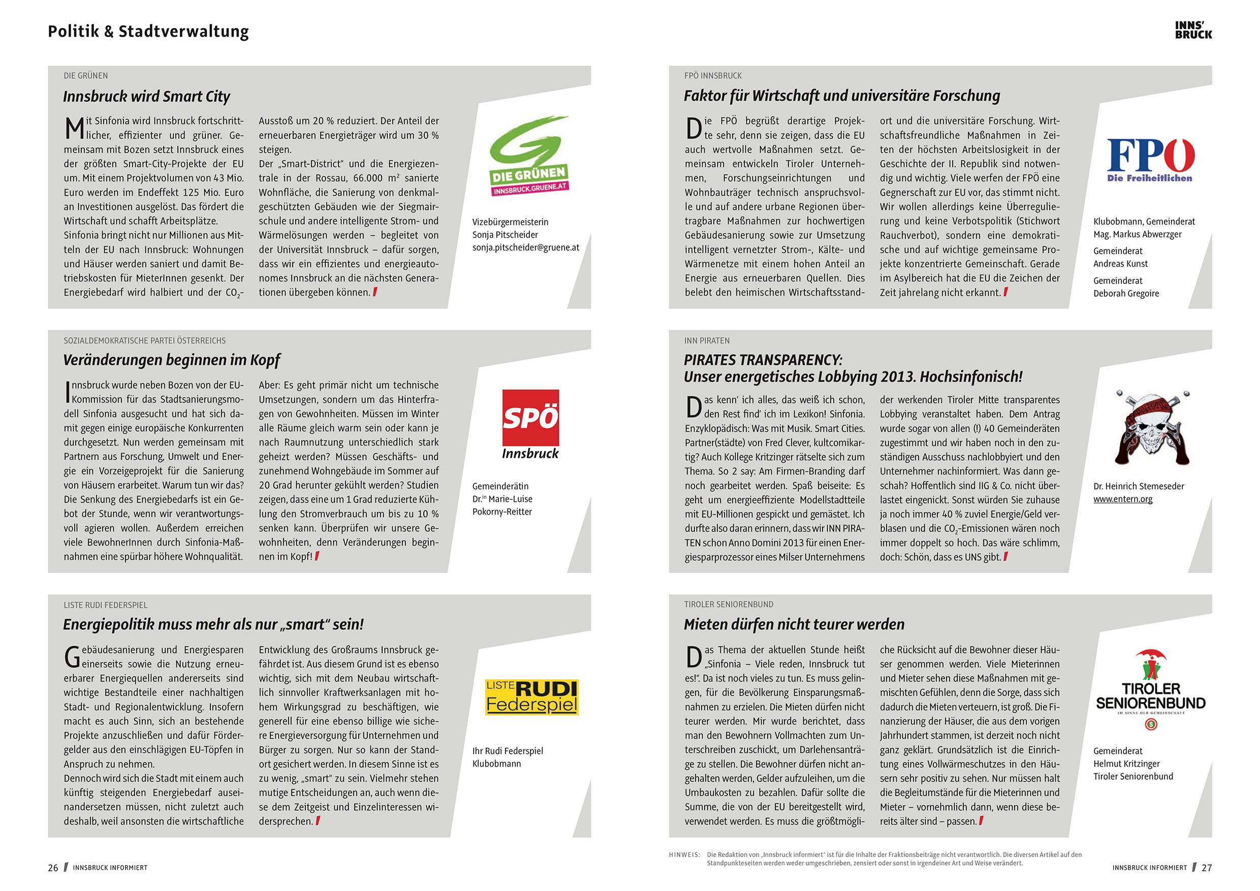 H I N W EI S : Die Redaktion von „Innsbruck informiert“ ist für die Inhalte der Fraktionsbeiträge nicht verantwortlich . Die diversen Artikel auf den