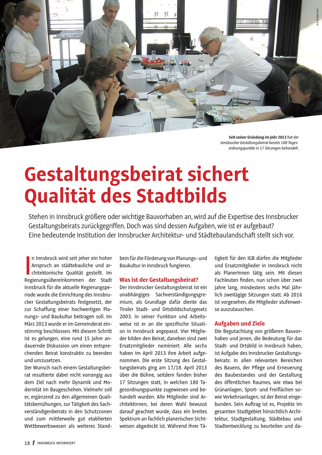 Innsbruck für die aktuelle Regierungsperiode wurde die Einrichtung des Innsbrucker Gestaltungsbeirats festgesetzt, der