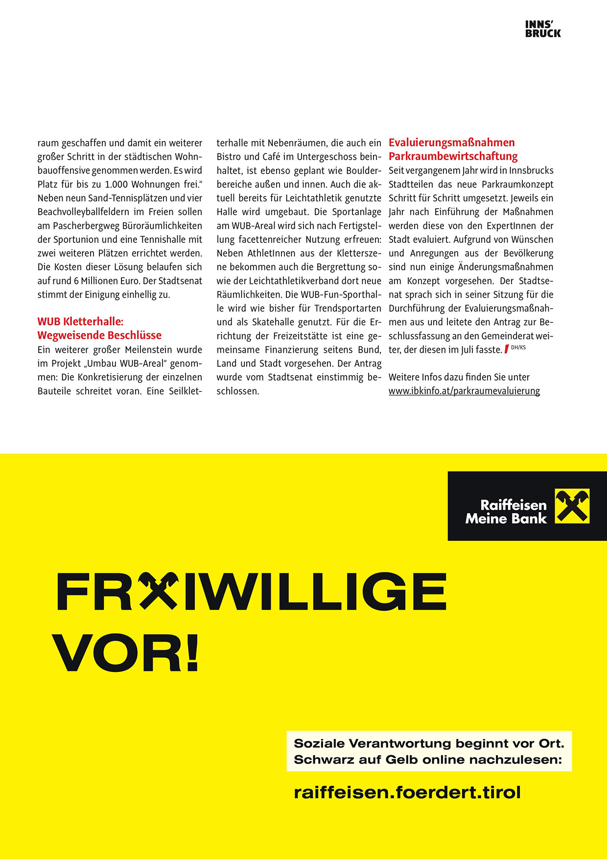 Durchführung der Evaluierungsmaßnahmen aus und leitete den Antrag zur Beschlussfassung an den Gemeinderat weiter, der diesen im Juli fasste. DH/KS