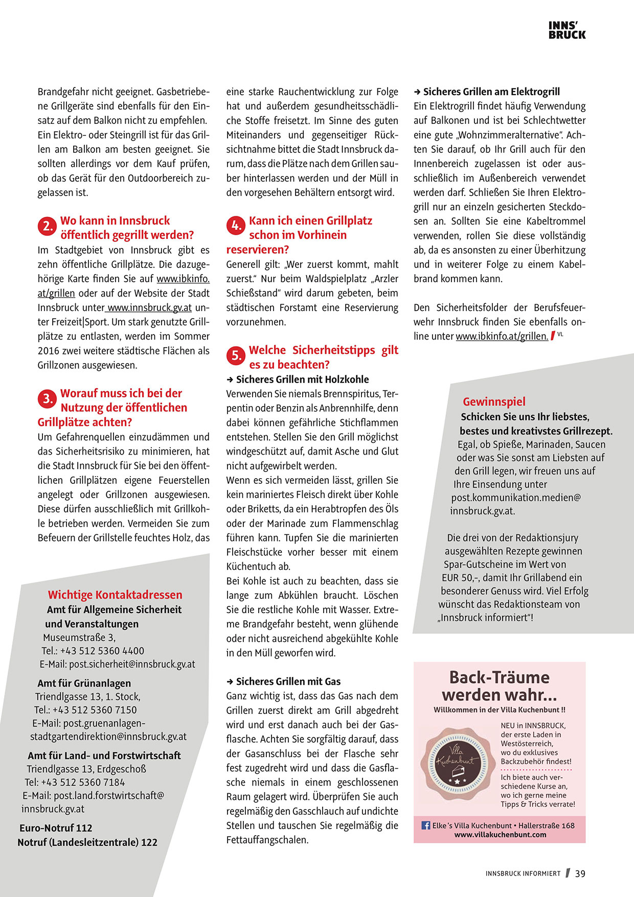 Den Sicherheitsfolder der Berufsfeuerwehr Innsbruck finden Sie ebenfalls online unter www.ibkinfo.at/grillen. VL