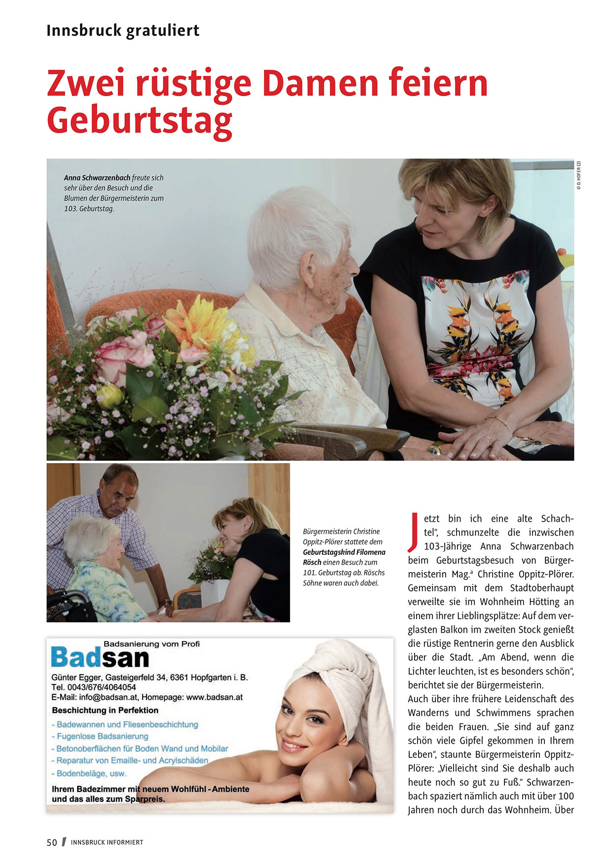 beim Geburtstagsbesuch von Bürgermeisterin Mag.a Christine Oppitz-Plörer.