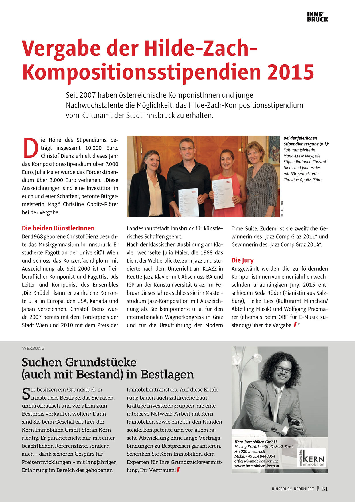 vom Kulturamt der Stadt Innsbruck zu erhalten.