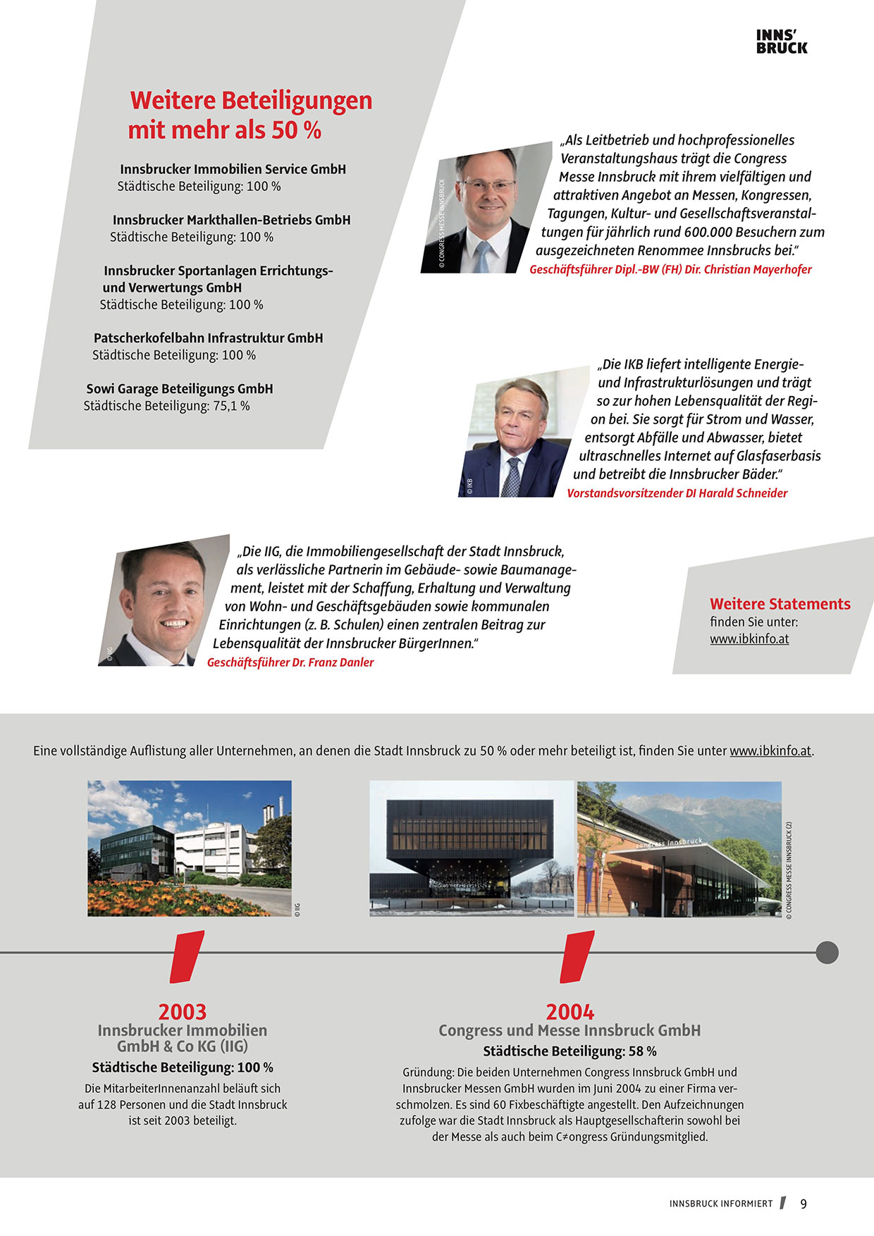 Eine vollständige Auflistung aller Unternehmen, an denen die Stadt Innsbruck zu 50 % oder mehr beteiligt ist, finden Sie unter www.ibkinfo.at.