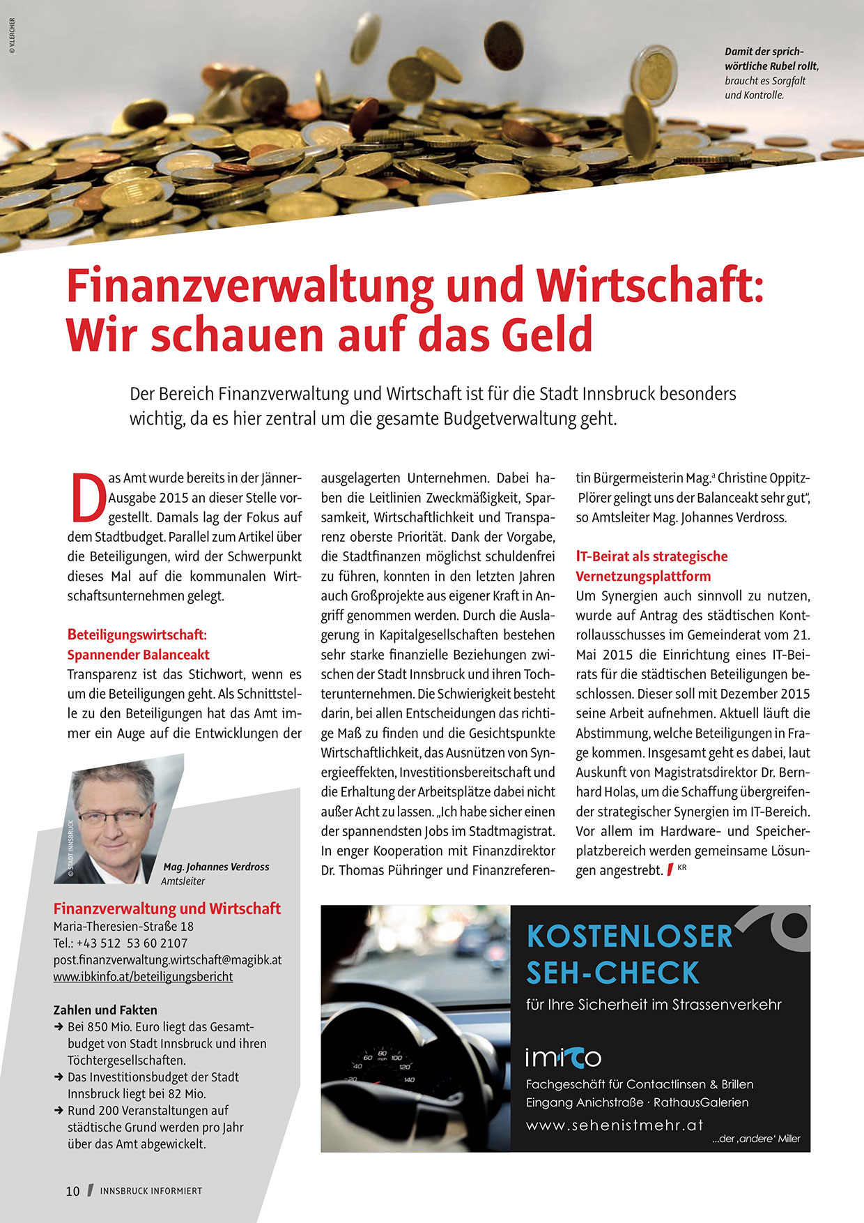Der Bereich Finanzverwaltung und Wirtschaft ist für die Stadt Innsbruck besonders
