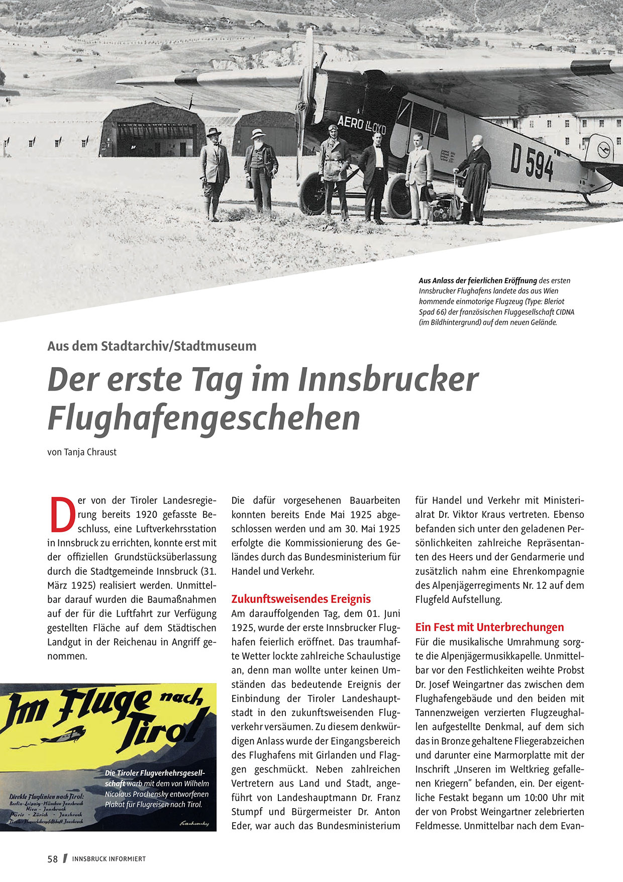 1925, wurde der erste Innsbrucker Flughafen feierlich eröffnet. Das traumhafte Wetter lockte zahlreiche Schaulustige