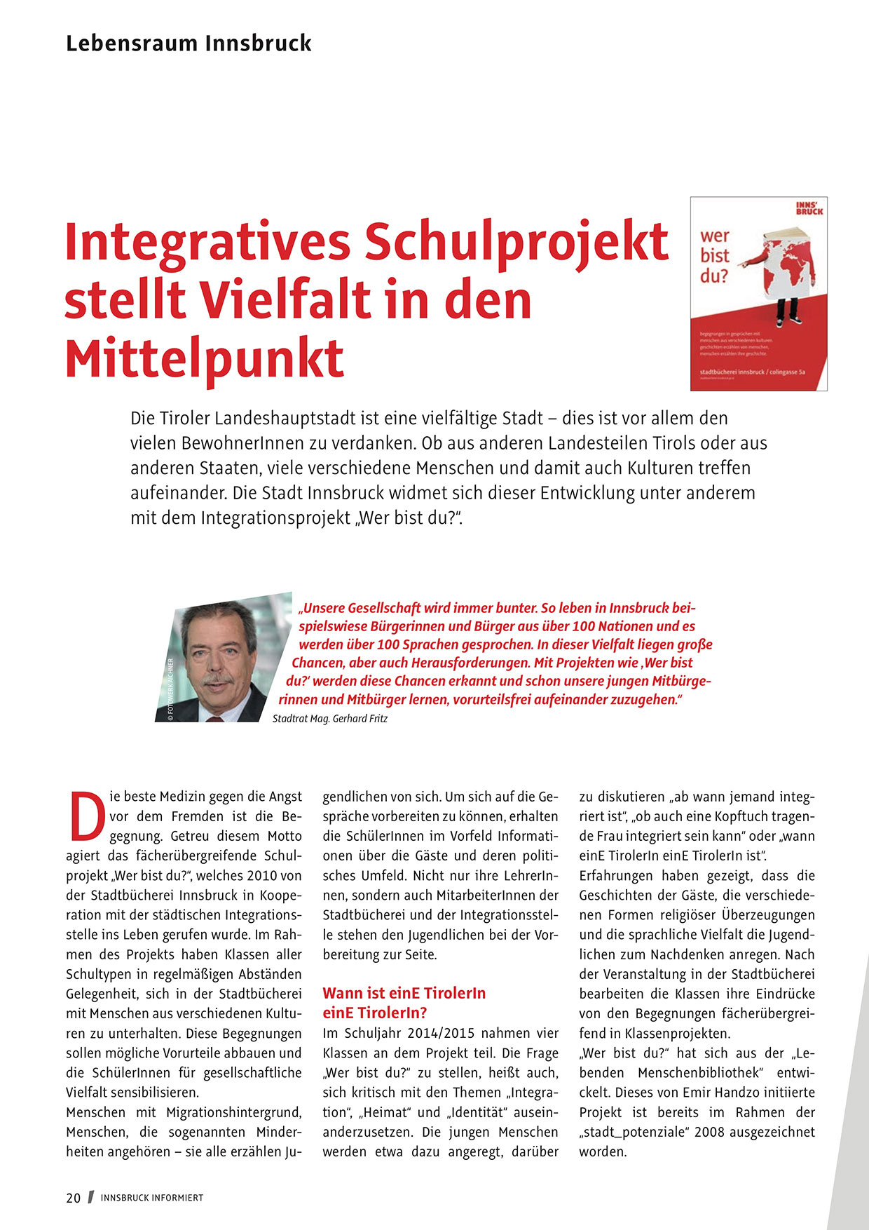 der Stadtbücherei Innsbruck in Kooperation mit der städtischen Integrationsstelle ins Leben gerufen wurde. Im Rahmen des Projekts haben Klassen aller