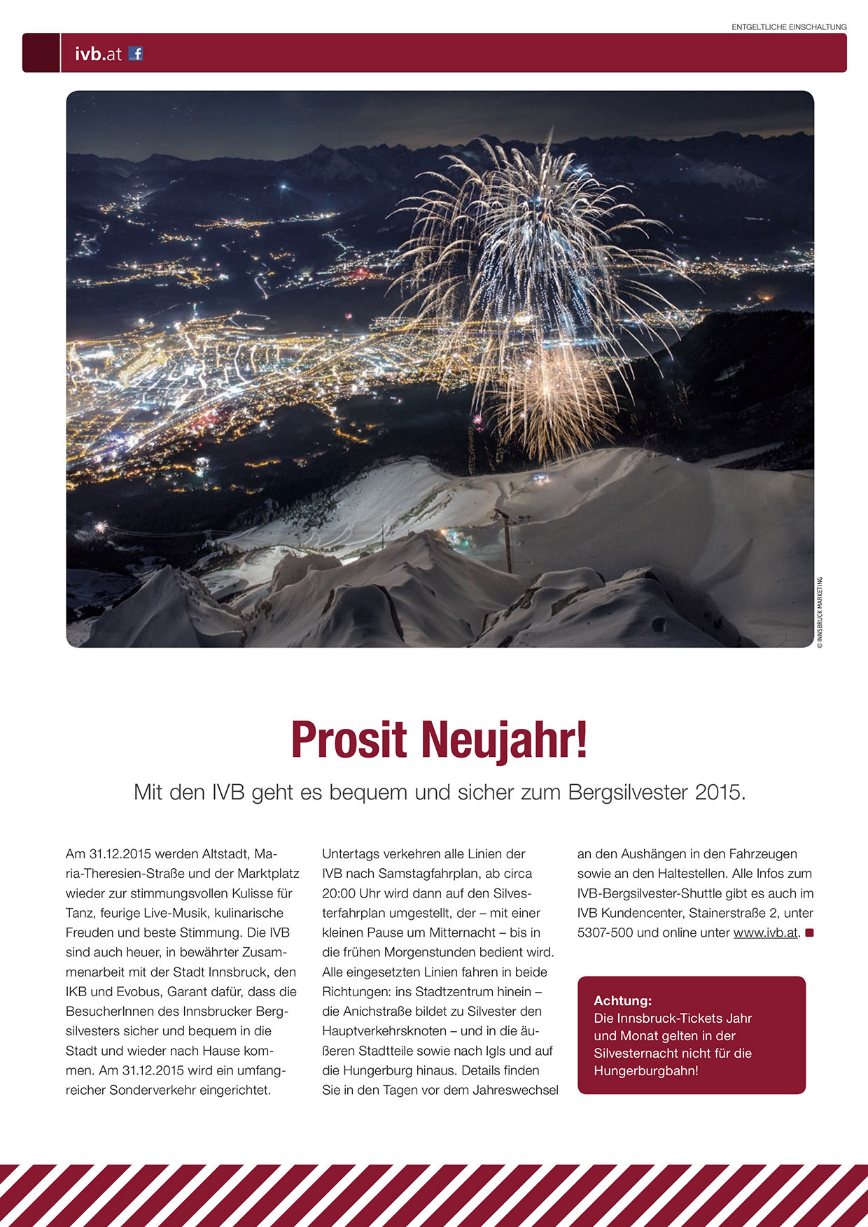 Mit den IVB geht es bequem und sicher zum Bergsilvester 2015.