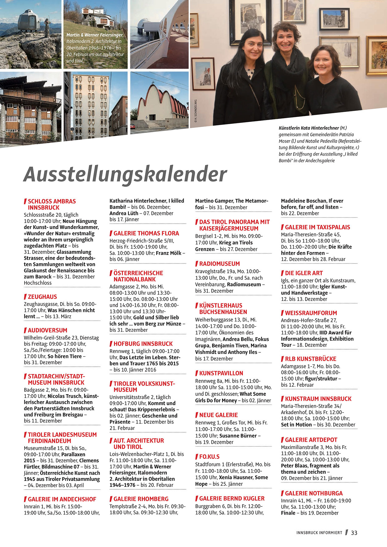 Innrain 1, Mi. bis Fr. 15:0019:00 Uhr, Sa./So. 15:00-18:00 Uhr,