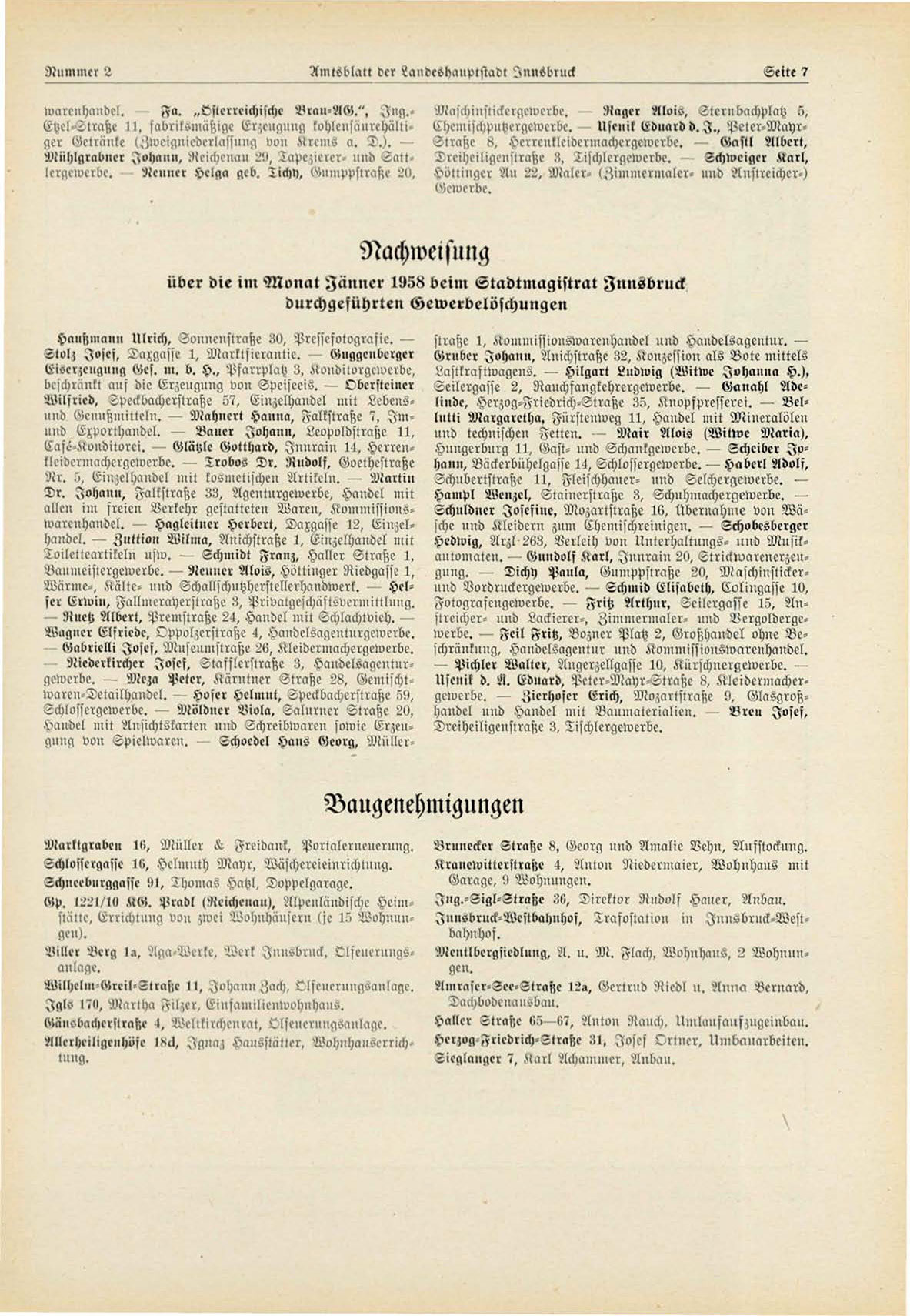 Seilcrgasse 2, Nanchfanglchrergewerbe. — Ganahl Adelinde, Hcrzog-Fricdrich-Straße 35>, Kuovfpresserci. — Bellutti Margaretha, Fiirstenlucg 11, Handel mit Mineralölen