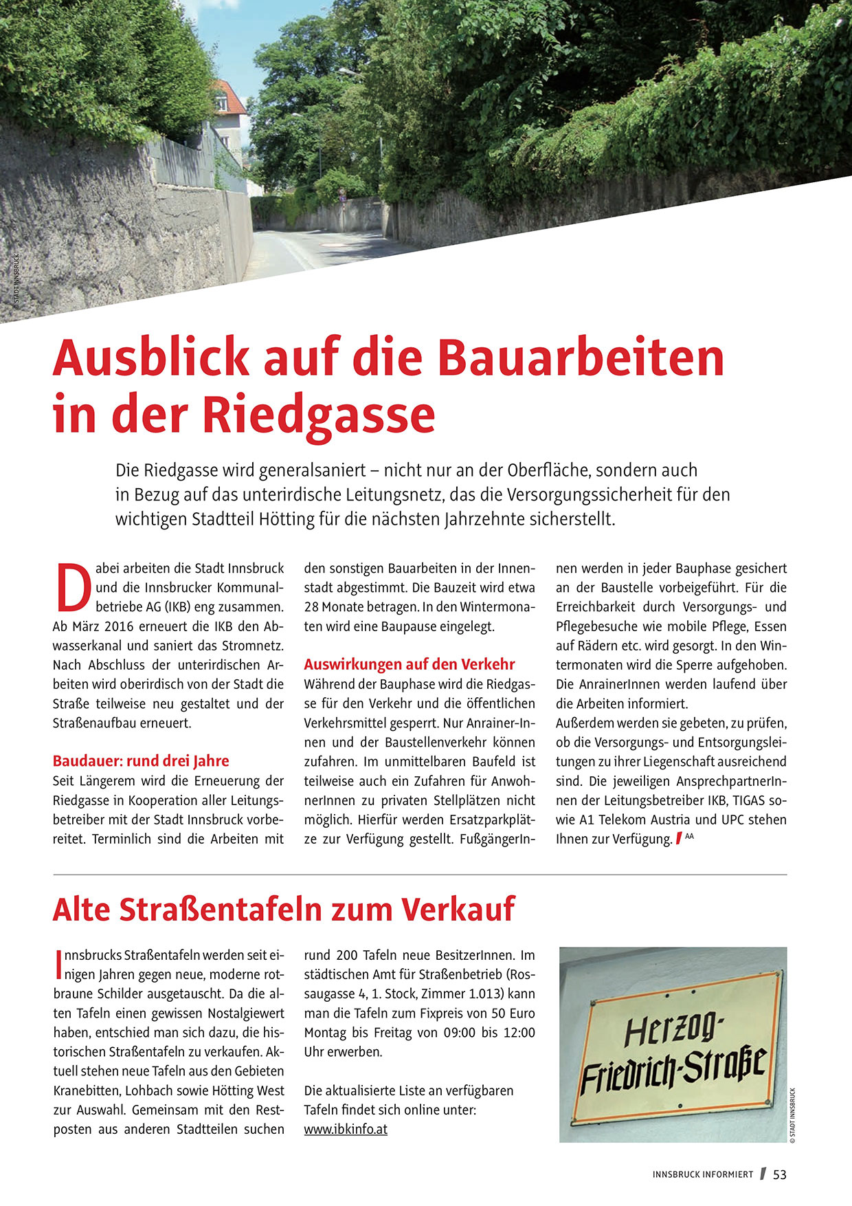 Riedgasse in Kooperation aller Leitungsbetreiber mit der Stadt Innsbruck vorbereitet. Terminlich sind die Arbeiten mit