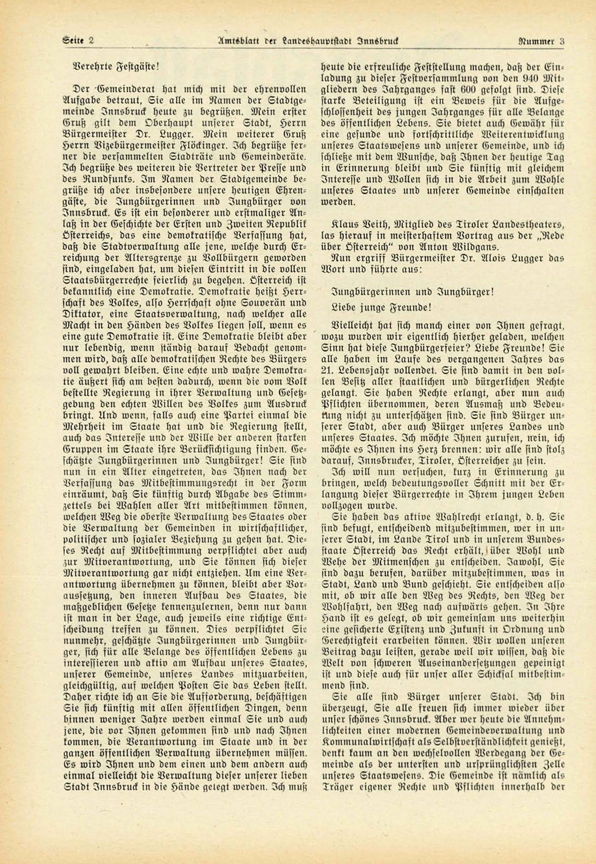 Aufgabe betraut, Sie alle im Namen der Stadtgemeinde Innsbruck heute zu begrüben. Mein erster
