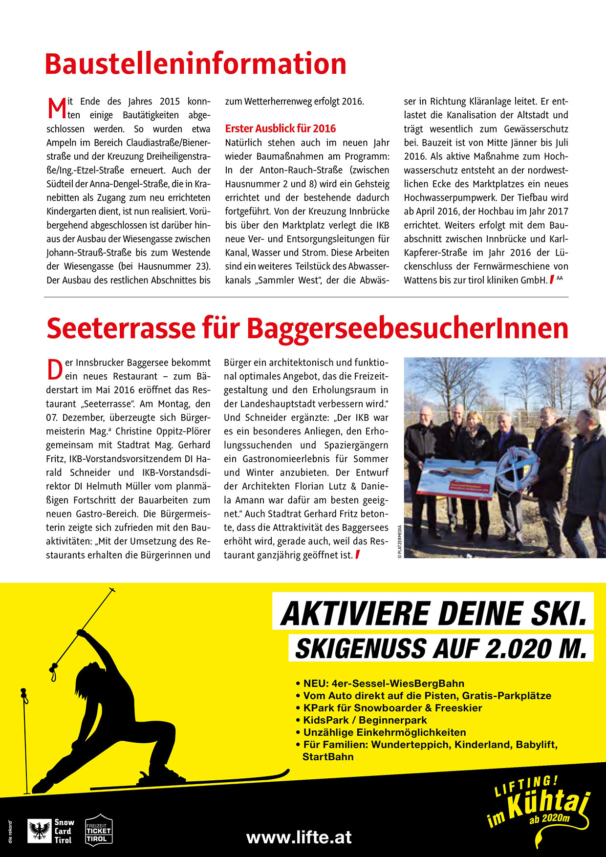 errichtet. Weiters erfolgt mit dem Bauabschnitt zwischen Innbrücke und KarlKapferer-Straße im Jahr 2016 der Lückenschluss der Fernwärmeschiene von