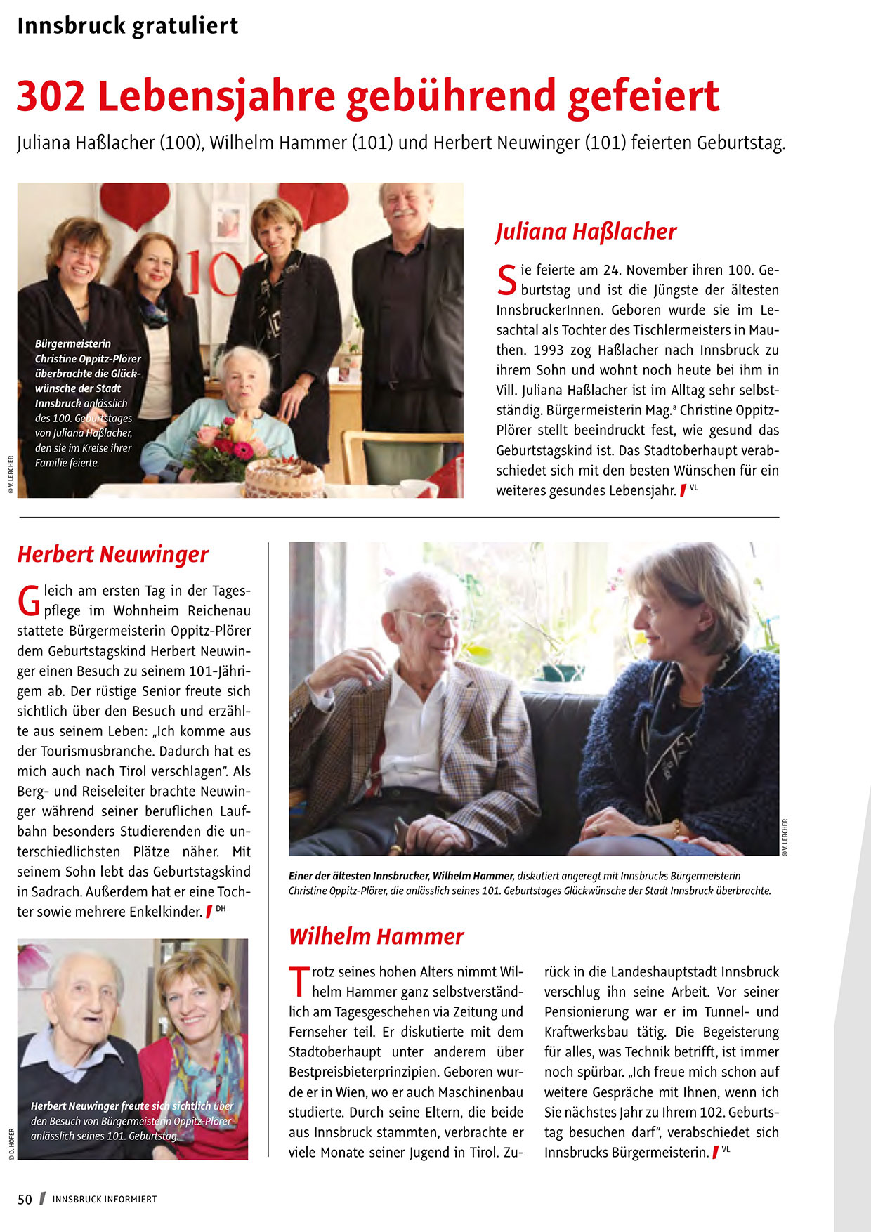 Einer der ältesten Innsbrucker, Wilhelm Hammer, diskutiert angeregt mit Innsbrucks Bürgermeisterin