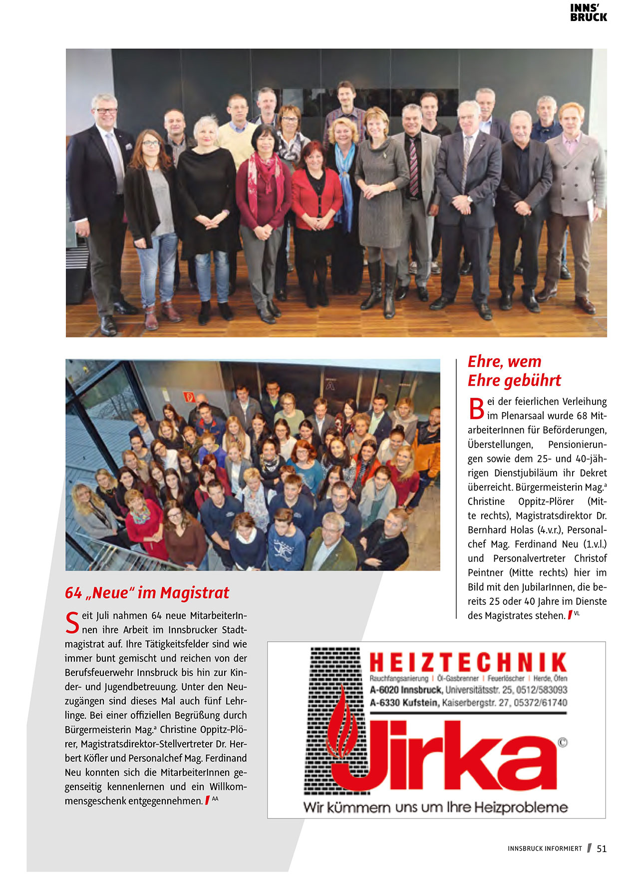 Berufsfeuerwehr Innsbruck bis hin zur Kinder- und Jugendbetreuung. Unter den Neuzugängen sind dieses Mal auch fünf Lehrlinge. Bei einer offiziellen Begrüßung durch