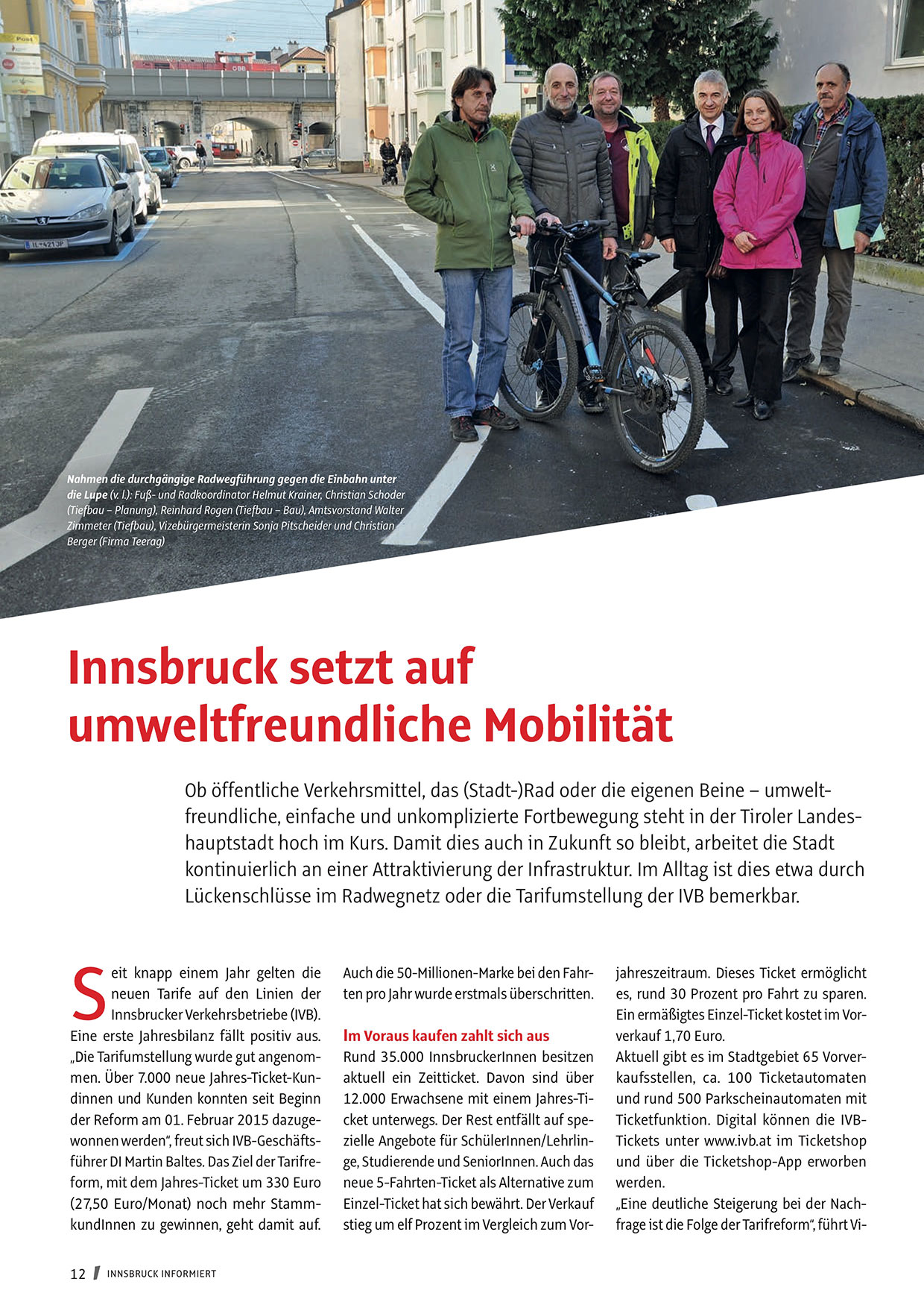 Lückenschlüsse im Radwegnetz oder die Tarifumstellung der IVB bemerkbar.