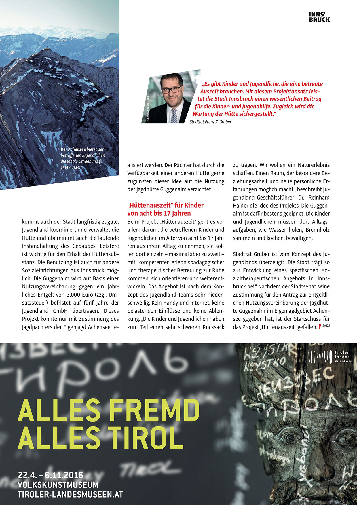 Auszeit brauchen. Mit diesem Projektansatz leistet die Stadt Innsbruck einen wesentlichen Beitrag