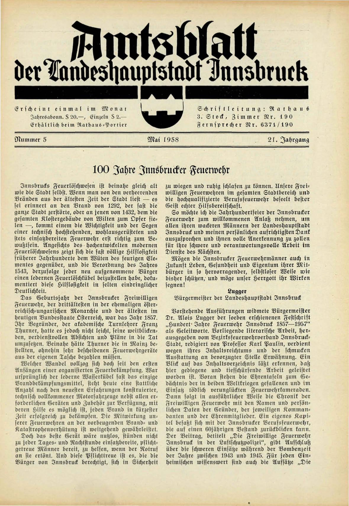 ..Hundert" Jahre Feuerwehr Innsbruck 1857—1957"