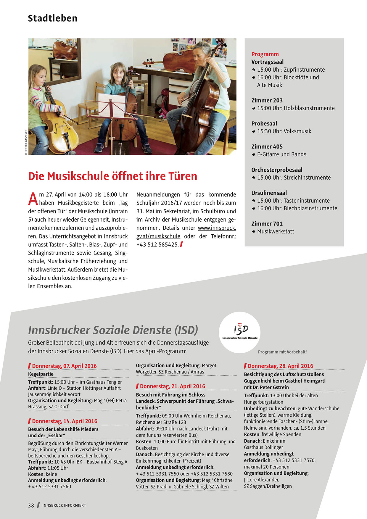 der Innsbrucker Sozialen Dienste (ISD). Hier das April-Programm: