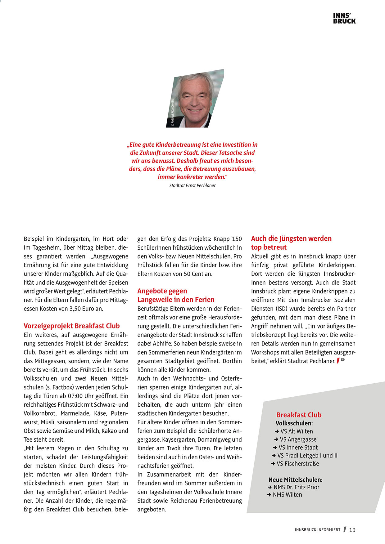 den Tag ermöglichen“, erläutert Pechlaner. Die Anzahl der Kinder, die regelmäßig den Breakfast Club besuchen, bele-
