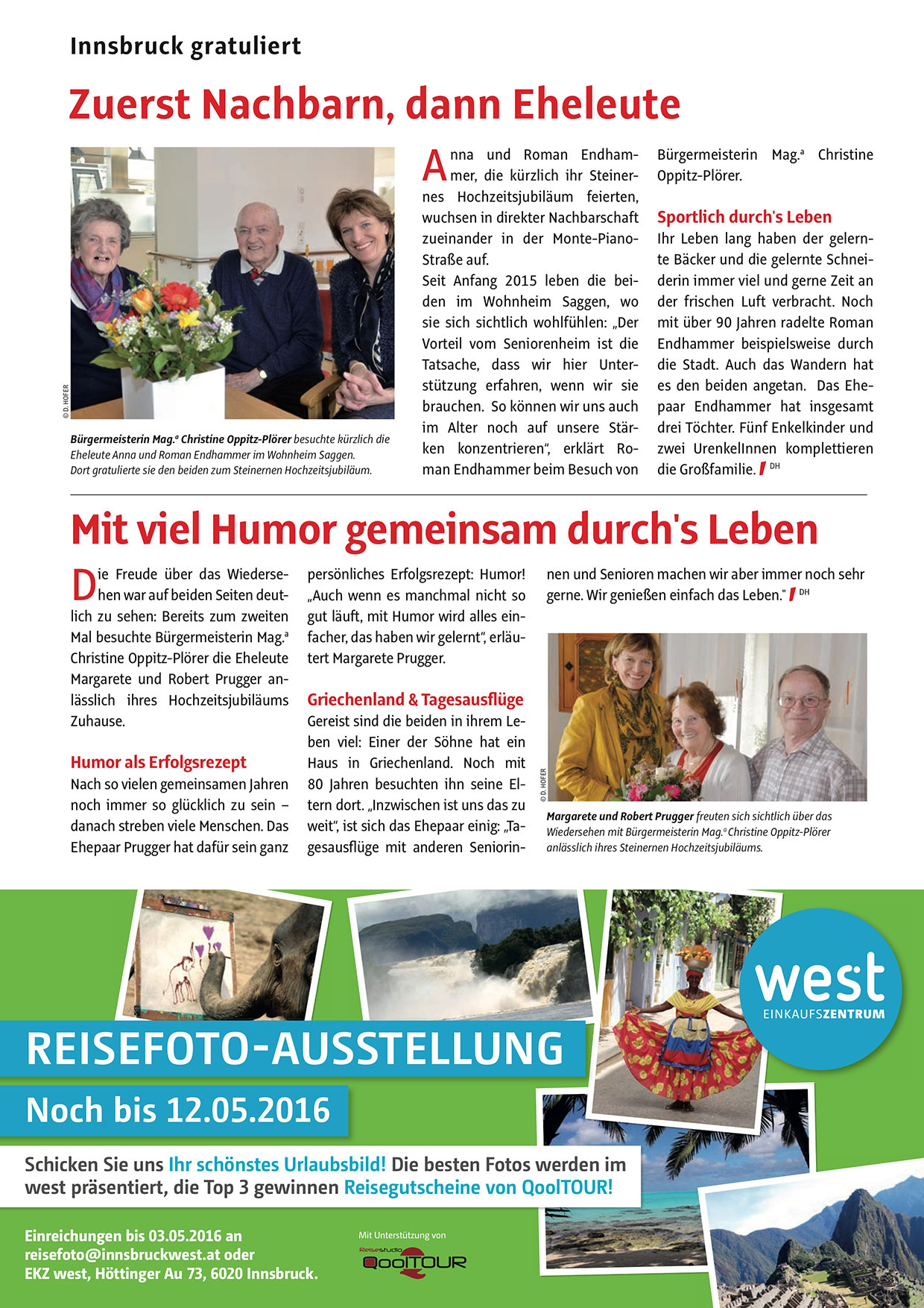 Margarete und Robert Prugger freuten sich sichtlich über das Wiedersehen mit Bürgermeisterin Christine Oppitz-Plörer anlässlich ihres