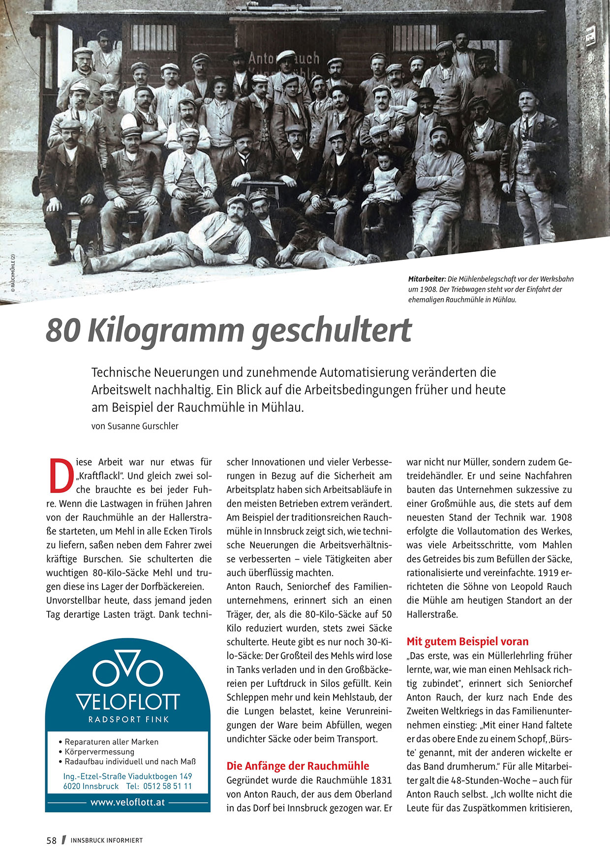 Am Beispiel der traditionsreichen Rauchmühle in Innsbruck zeigt sich, wie technische Neuerungen die Arbeitsverhältnisse verbesserten – viele Tätigkeiten aber