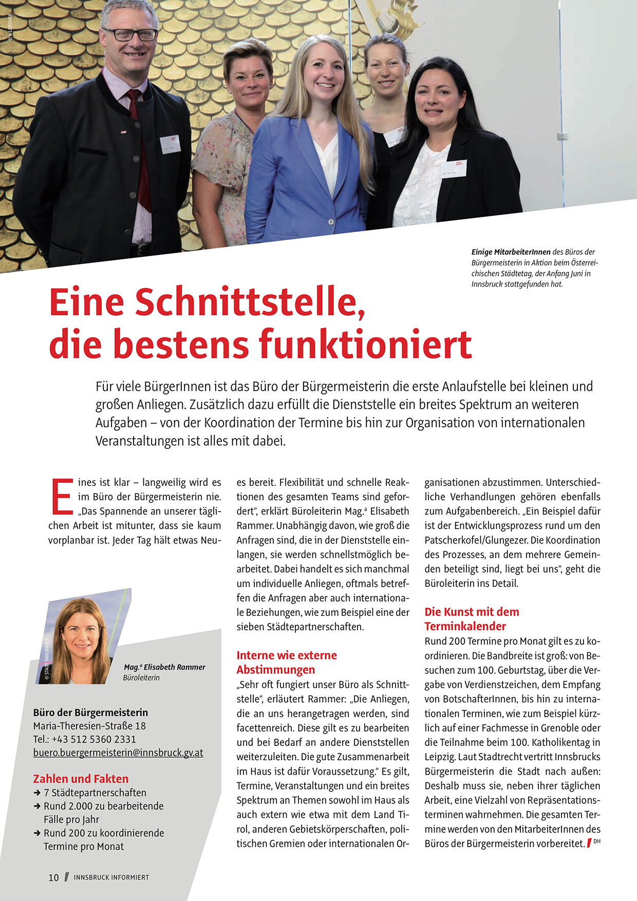auch extern wie etwa mit dem Land Tirol, anderen Gebietskörperschaften, politischen Gremien oder internationalen Or-