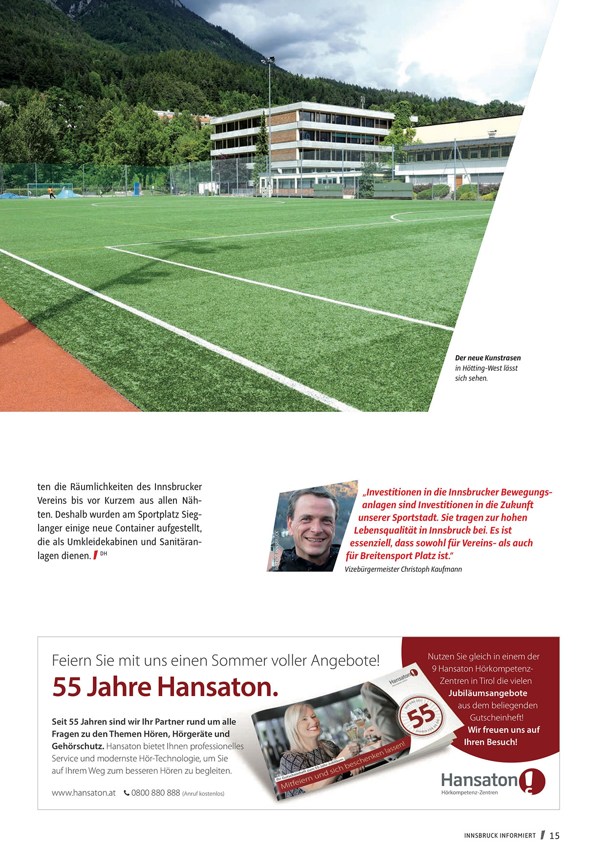 „Investitionen in die Innsbrucker Bewegungsanlagen sind Investitionen in die Zukunft