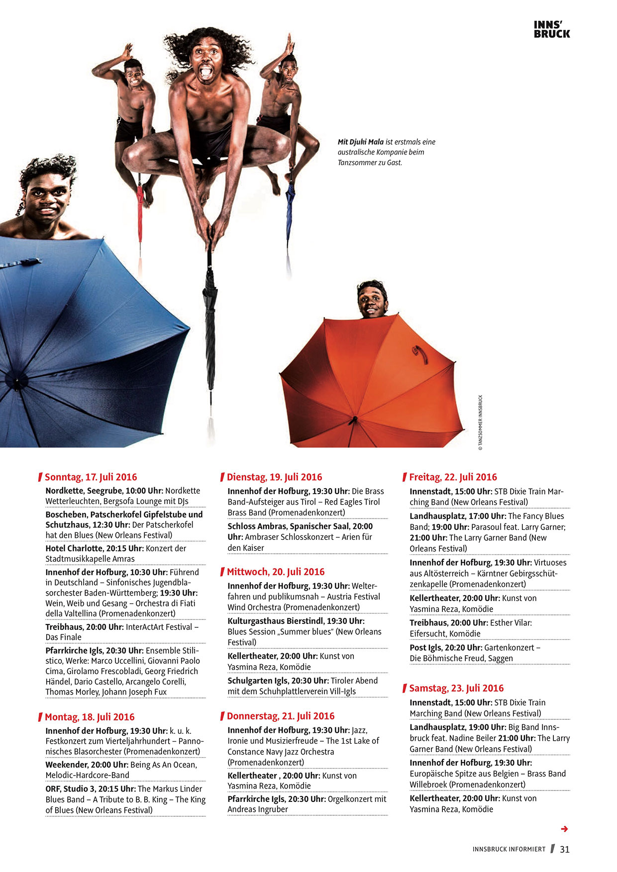Landhausplatz, 19:00 Uhr: Big Band Innsbruck feat. Nadine Beiler 21:00 Uhr: The Larry