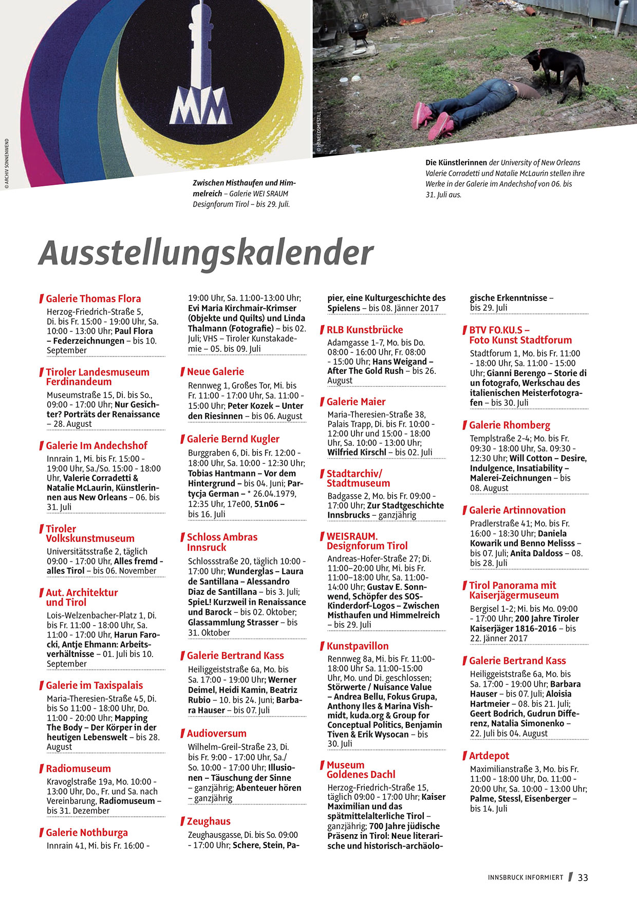 Innrain 1, Mi. bis Fr. 15:00 19:00 Uhr, Sa./So. 15:00 - 18:00