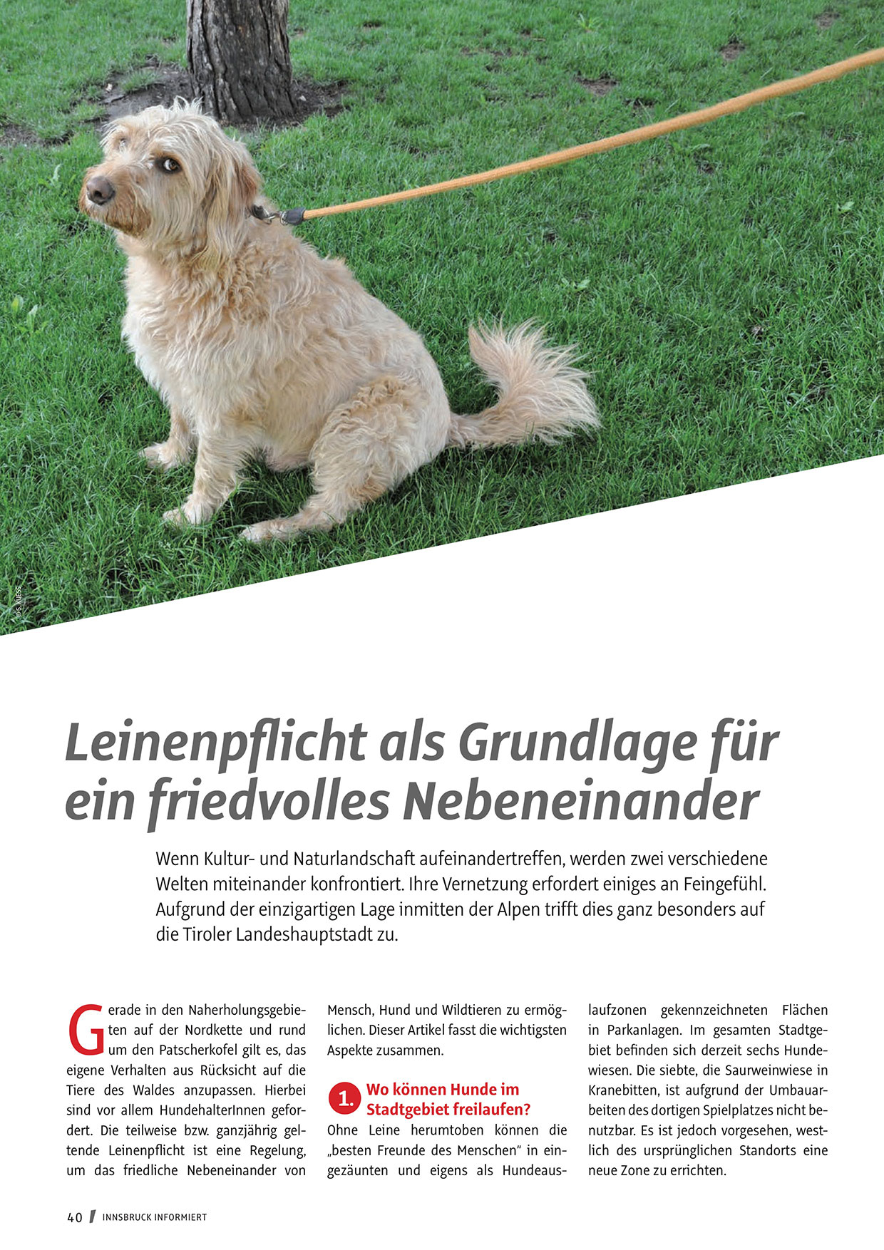 sind vor allem HundehalterInnen gefordert. Die teilweise bzw. ganzjährig geltende Leinenpflicht ist eine Regelung,