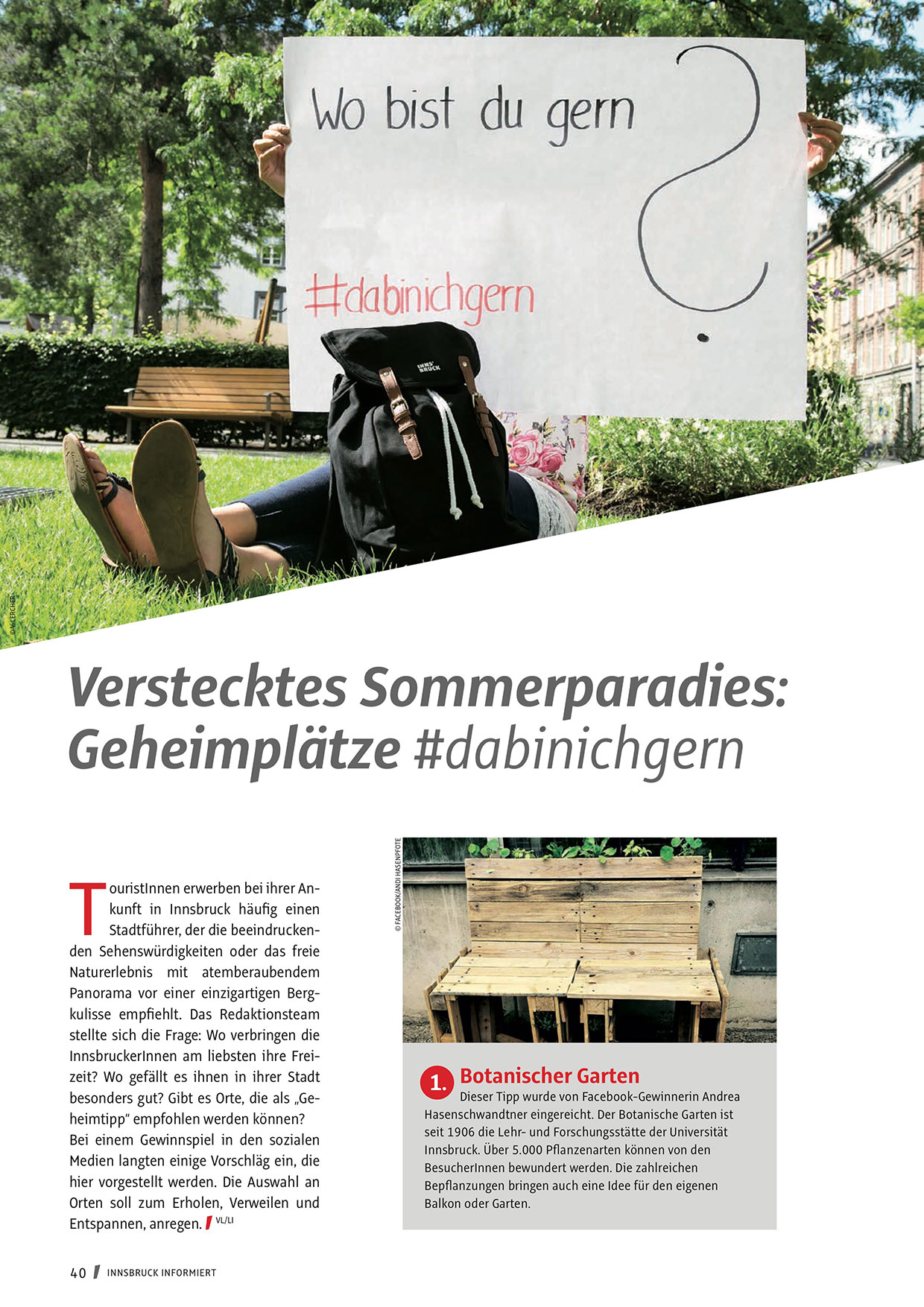 InnsbruckerInnen am liebsten ihre Freizeit? Wo gefällt es ihnen in ihrer Stadt