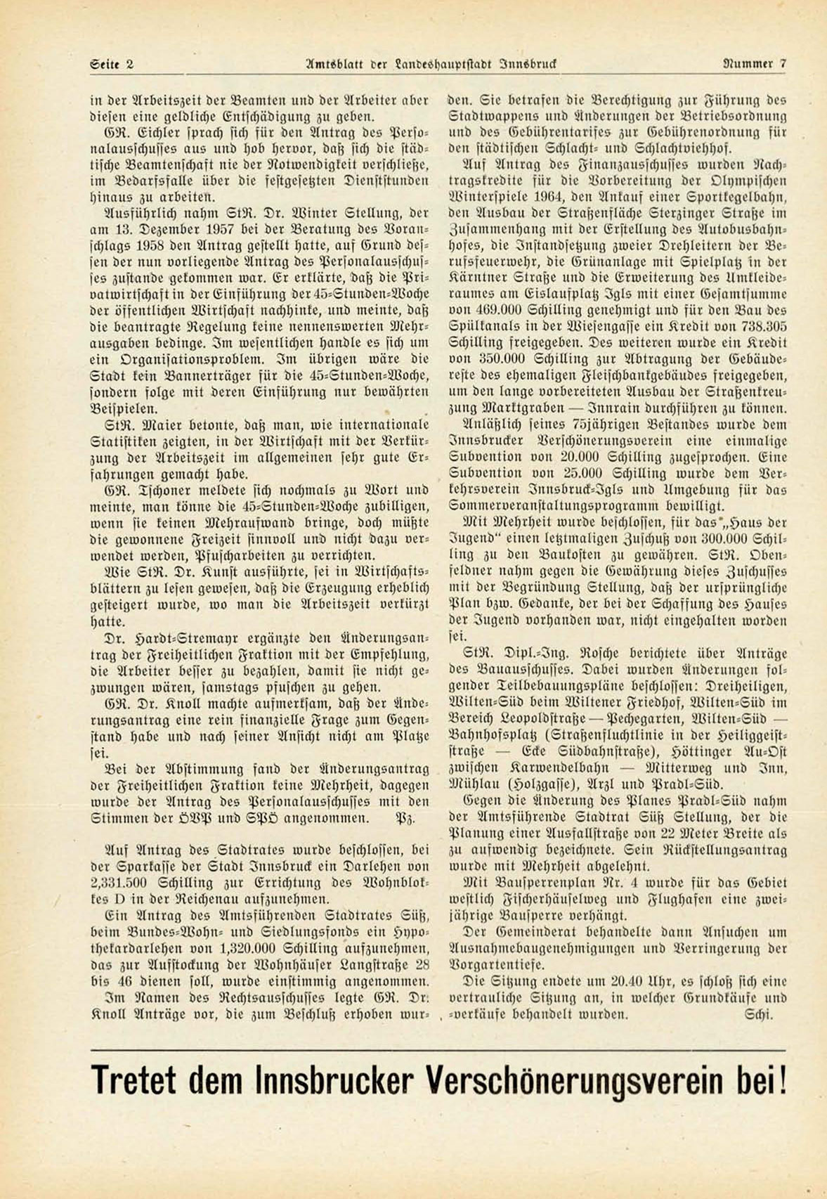am 13. Dezember 1957 bei der Beratung des Voranschlags 1958 den Antrag gestellt hatte, auf Grund dessen der nun vorliegende Antrag des Personalausschusses zustande gekommen war. Er erklärte, daß die P r i vatwirtschaft in der Einführung der45-Stunden-Woche