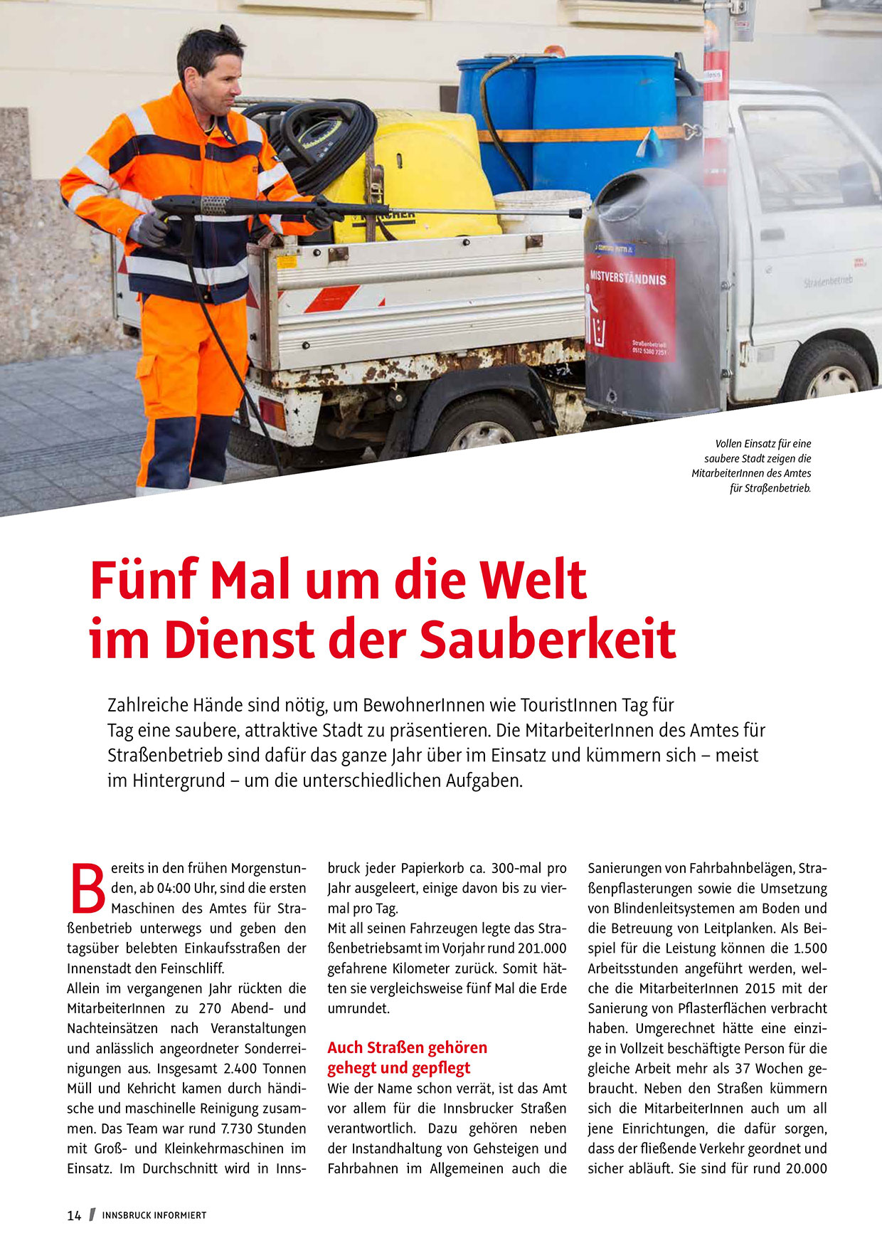 Tag eine saubere, attraktive Stadt zu präsentieren. Die MitarbeiterInnen des Amtes für