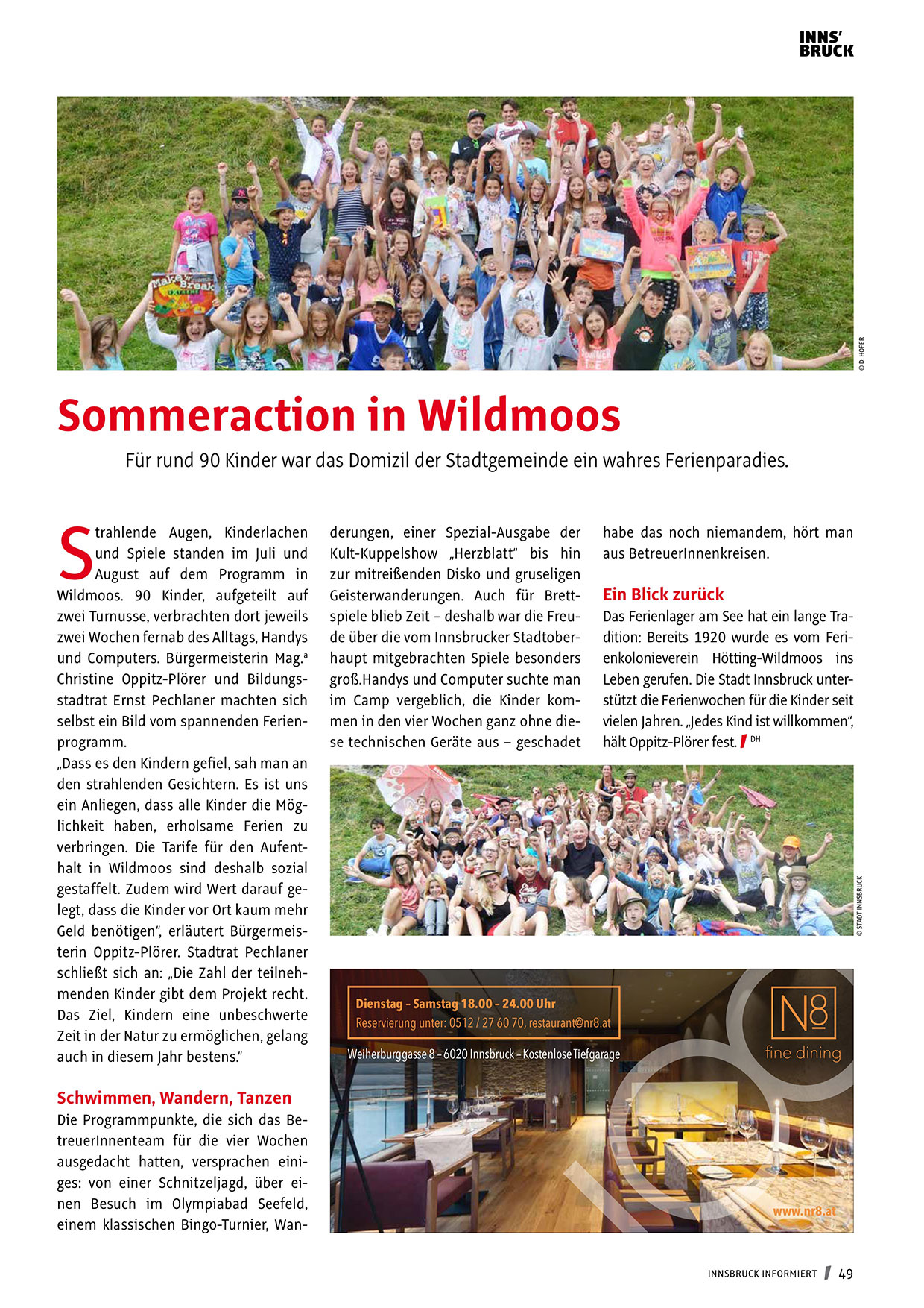 Leben gerufen. Die Stadt Innsbruck unterstützt die Ferienwochen für die Kinder seit