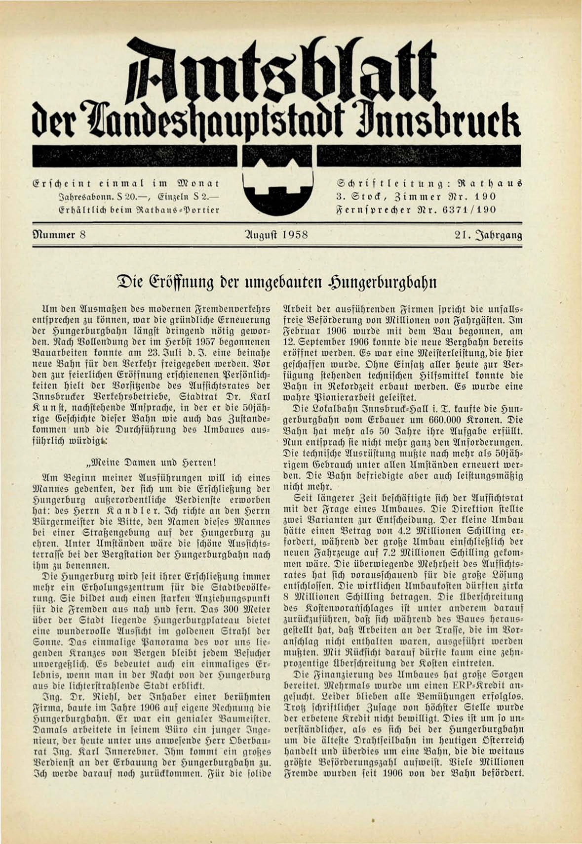 der Hungerburgbahn längst dringend nötig geworden. Nach Vollendung der im Herbst 1957 begonnenen