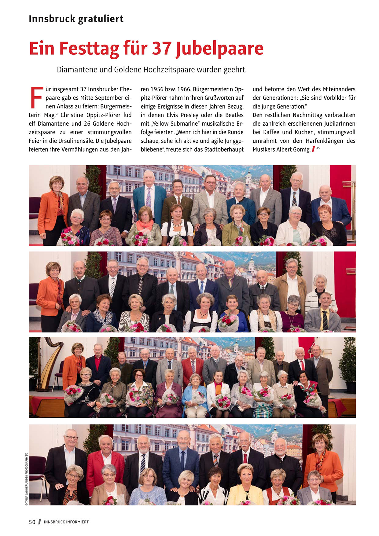 ür insgesamt 37 Innsbrucker Ehepaare gab es Mitte September einen Anlass zu feiern: Bürgermeisterin Mag.a Christine Oppitz-Plörer lud