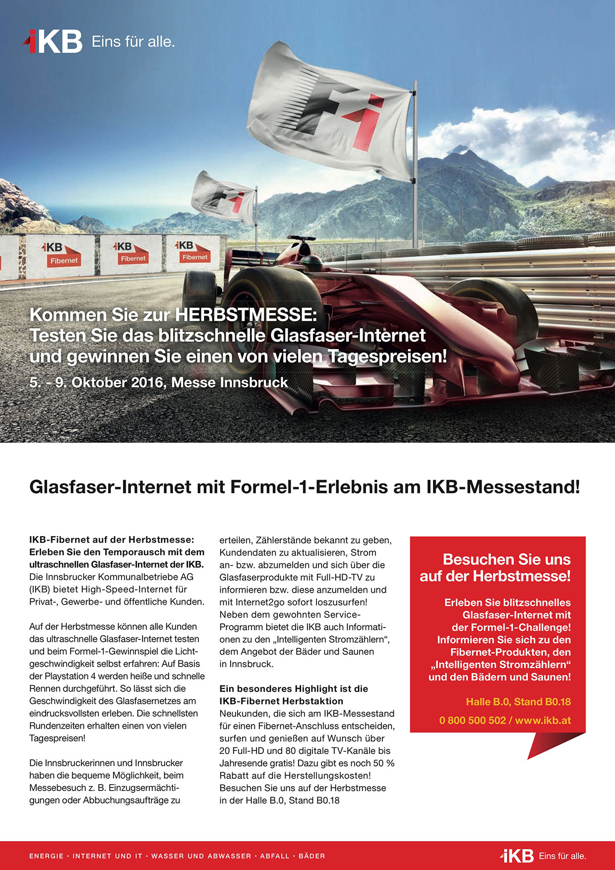 Glasfaser-Internet mit Formel-1-Erlebnis am IKB-Messestand!