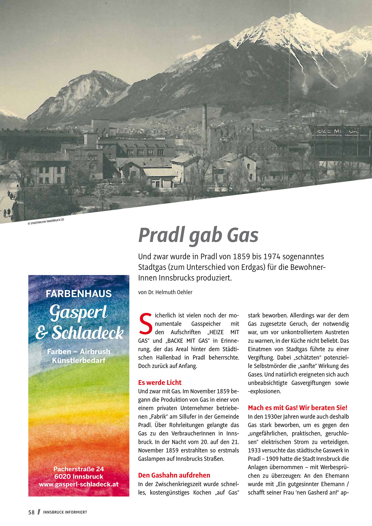 GAS“ und „BACKE MIT GAS“ in Erinnerung, der das Areal hinter dem Städtischen Hallenbad in Pradl beherrschte.
