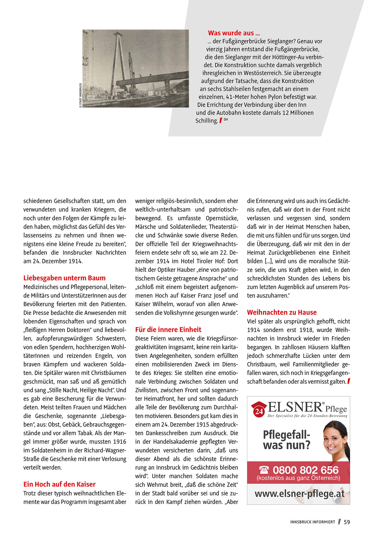 1914 sondern erst 1918, wurde Weihnachten in Innsbruck wieder im Frieden